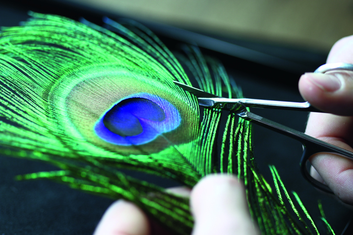 Muy utilizada en el siglo XIX, la plumajería es una técnica considerada el símbolo eterno de elegancia. Con paciencia, minuciosidad y destreza infinitas, el artista plumajero expresa plenamente la fantasía y la poesía con lo que eleva su precioso oficio artístico a un grado de perfección absoluta. Las plumas son rigurosamente clasificadas y seleccionadas por su estabilidad, su densidad y su finura antes de ser limpiadas, estabilizadas al vapor y talladas a mano. Este arte se asemeja mucho al de la marquetería: las plumas se posicionan una por una para reproducir el motivo deseado antes de ser pegadas sobre una superficie plana.