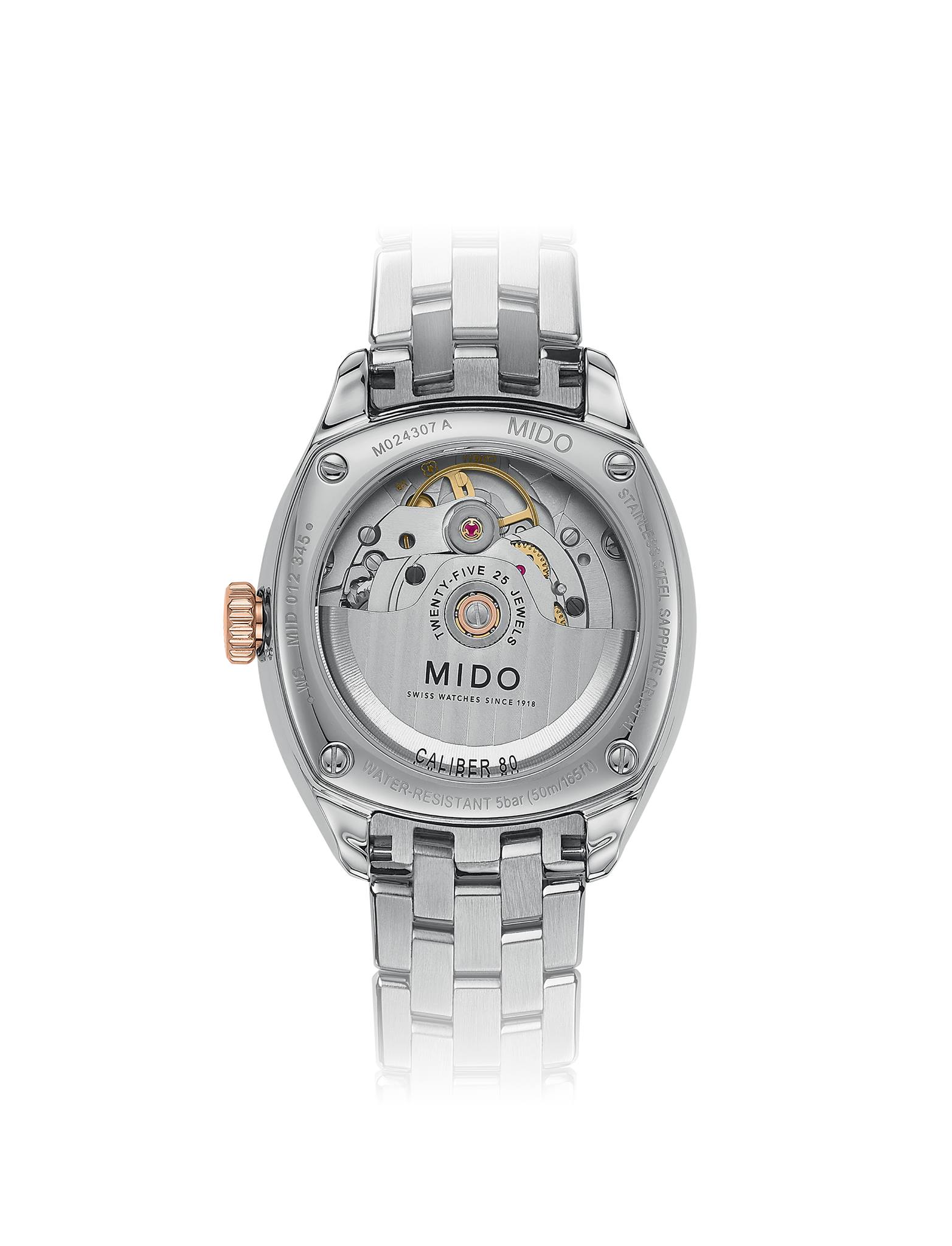 Mido retoma la estética refinada de la colección Belluna Royal con una composición ultrafemenina adornada con nácar y diamantes. Una caja en forma de cojín en tonos plateados bicolores y oro rosa agrega un toque de originalidad a sus líneas atemporales. En el corazón del Belluna Royal Milady late el Calibre 80, un movimiento automático con una reserva de marcha de hasta 80 horas. ¡Solo lo suficiente para hacer un viaje a Londres sin preocuparse por el tiempo! Ya sea en el té de la tarde con amigos o en una elegante velada, el Belluna Royal Milady presenta un aspecto noble que tiene un estilo decididamente británico.
