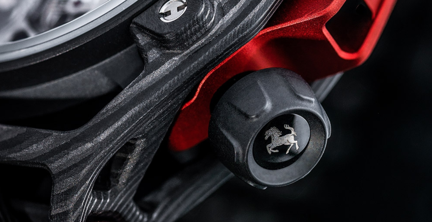 Diseñado por Ferrari, elaborado por HUBLOT, este es el principio que prevaleció para el diseño y perfeccionamiento del nuevo Techframe Ferrari 70 Years Tourbillon Chronograph. Un esfuerzo de equipo que comenzó con Ferrari en Maranello y terminó en Nyon con Hublot.