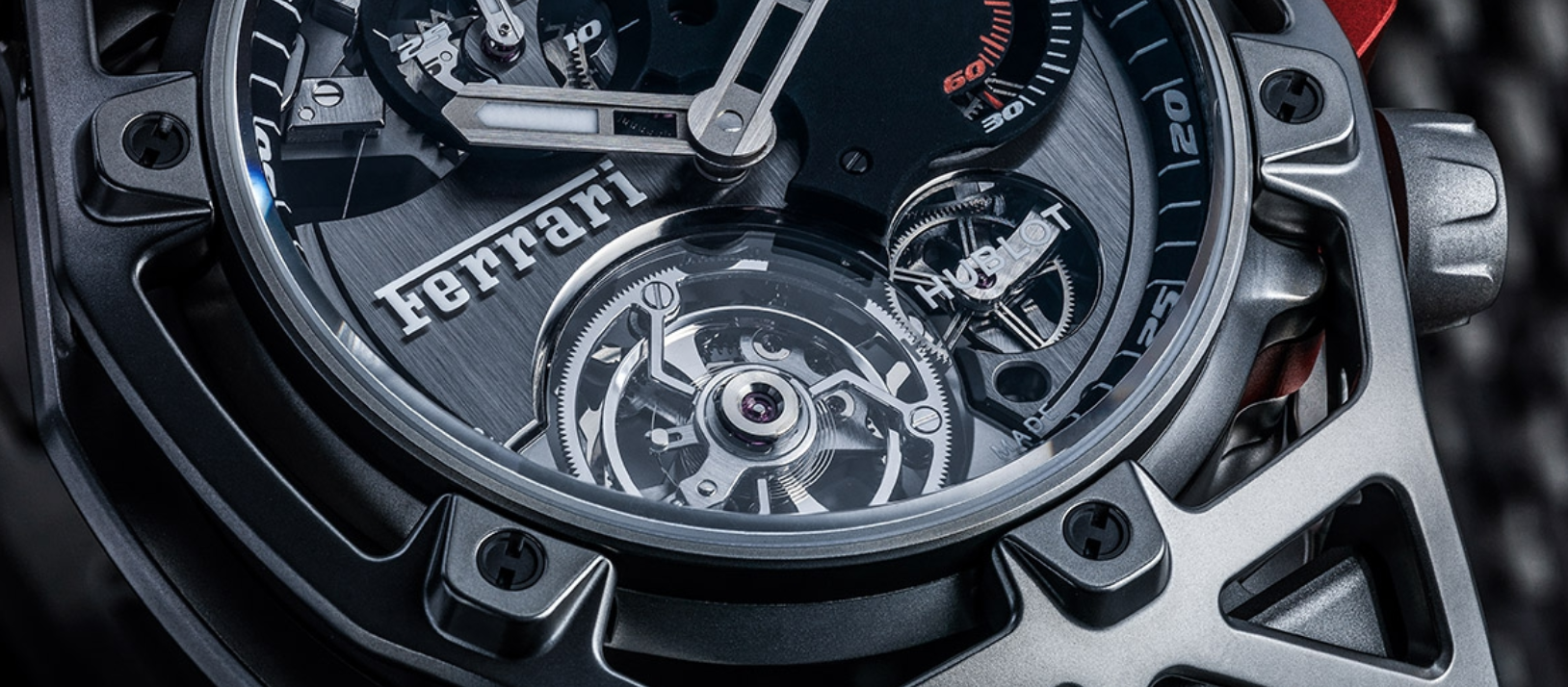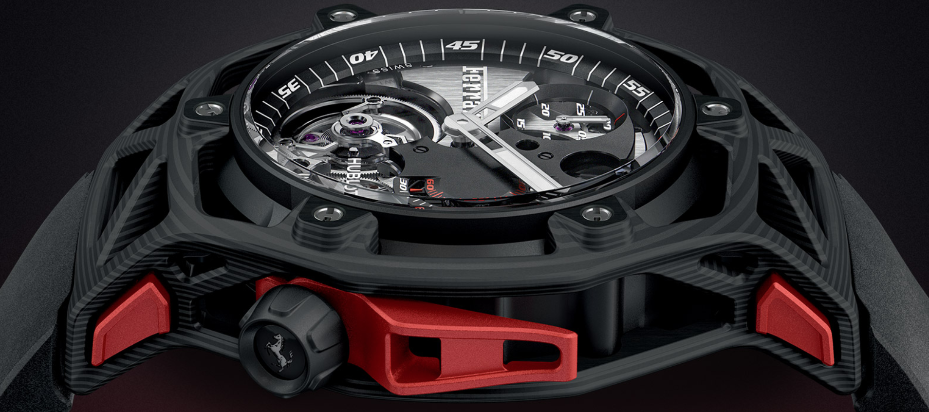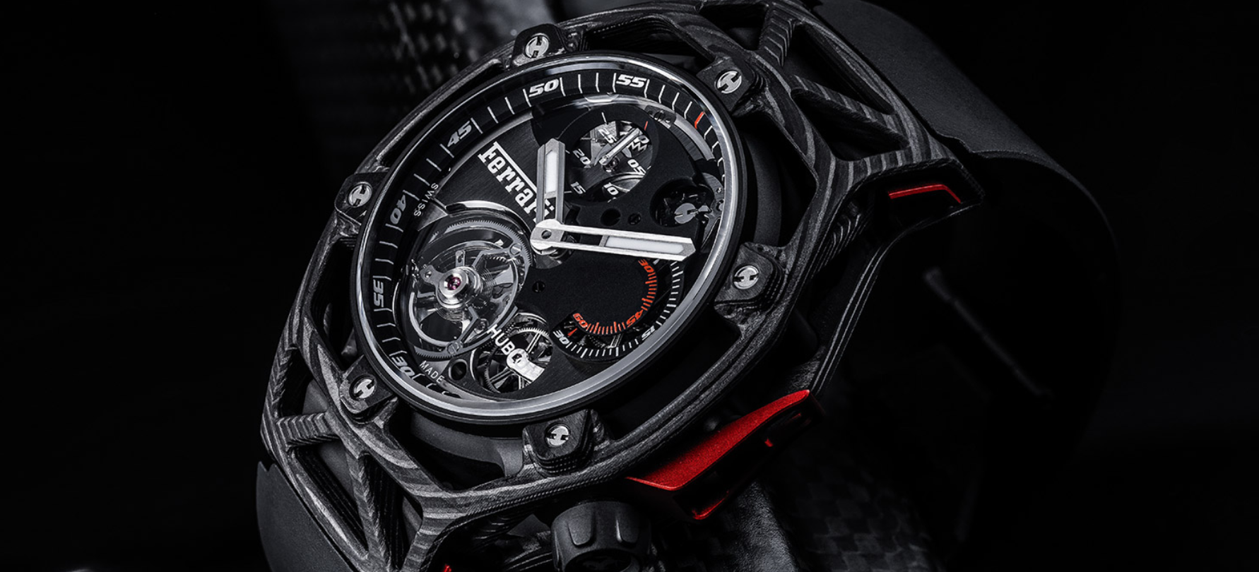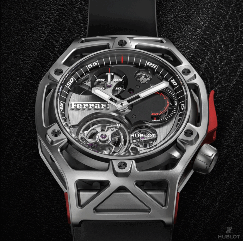 Esta nueva línea en las colecciones de HUBLOT pretende ofrecer un reloj que está profundamente arraigado en el ADN de Ferrari, que combina la fuerza, el rendimiento y la agilidad, mientras se produce y perfecciona gracias a la fabricación de HUBLO.