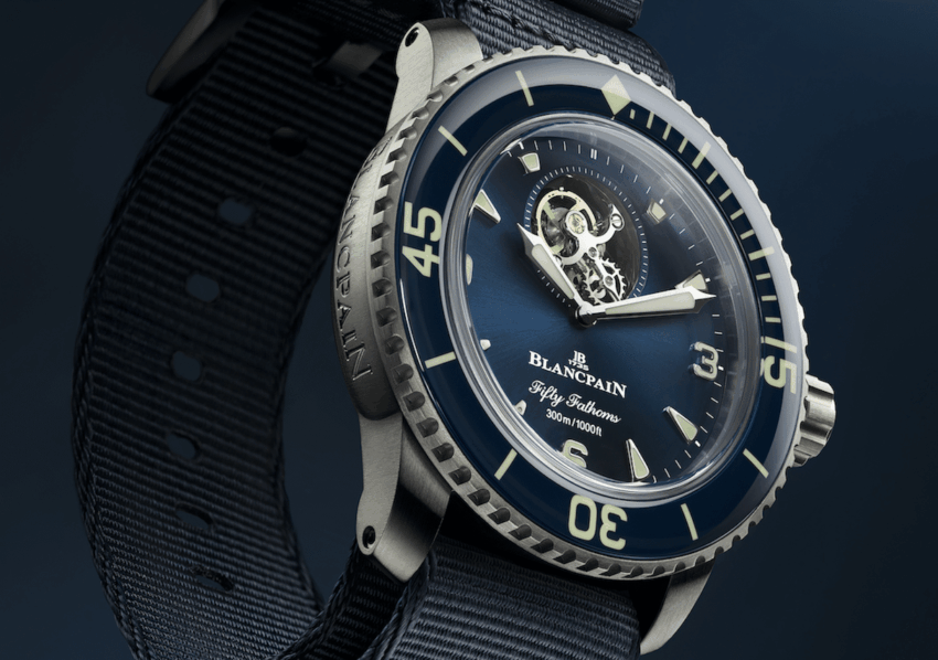 El Fifty Fathoms con tourbillon de Blancpain se viste de titanio y azul