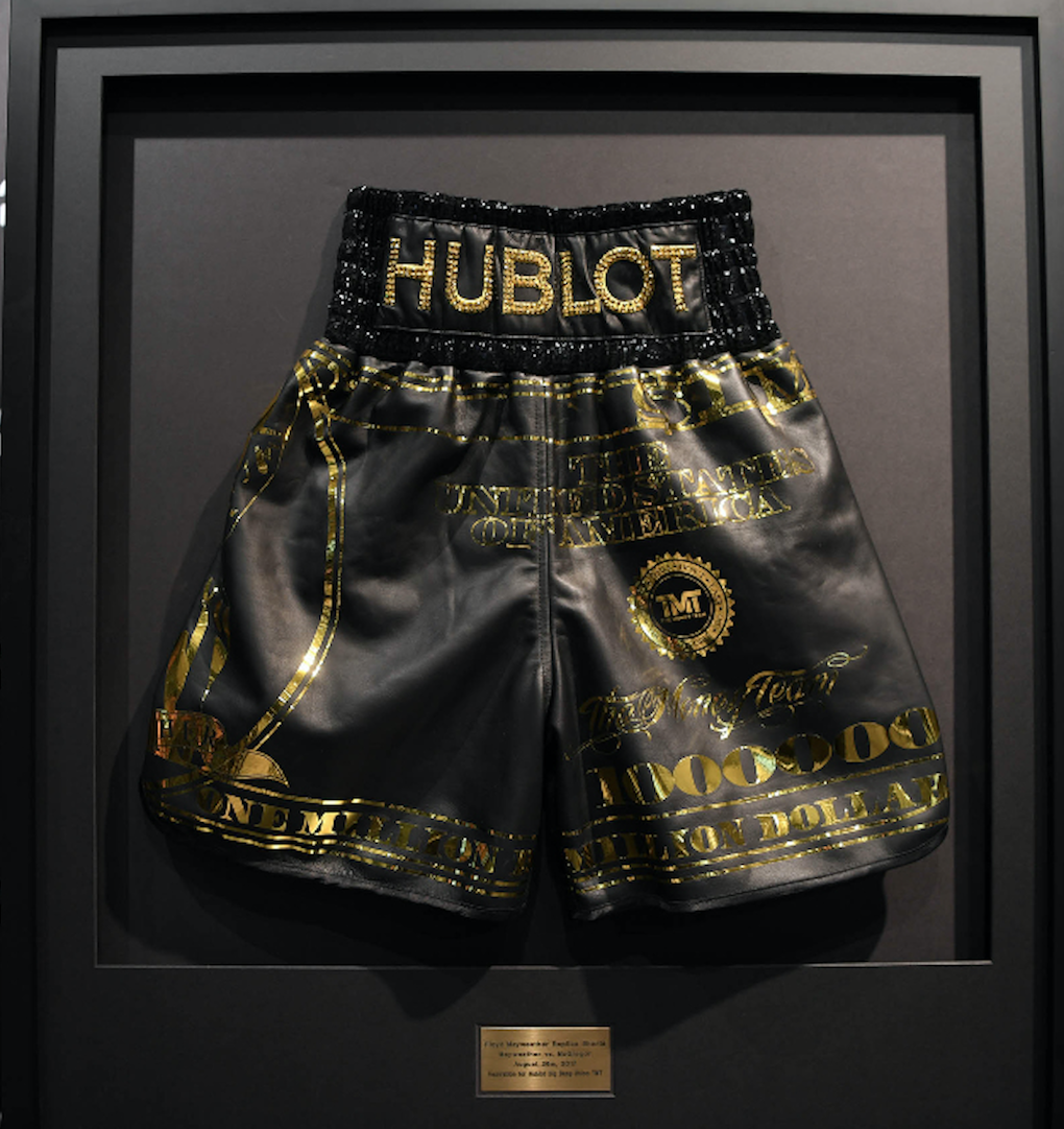 Y es que hace algunos años, desde el 2015 para ser exactos, la firma relojera comenzó su alianza con Mayweather, siendo la protagonista durante la pelea contra Manny Pacquiao. A partir de ese momento, el boxeador ha continuado usando sus shorts con el nombre de Hublot bordado al frente del cintillo, dejando en claro sus gustos por la Alta Relojería.