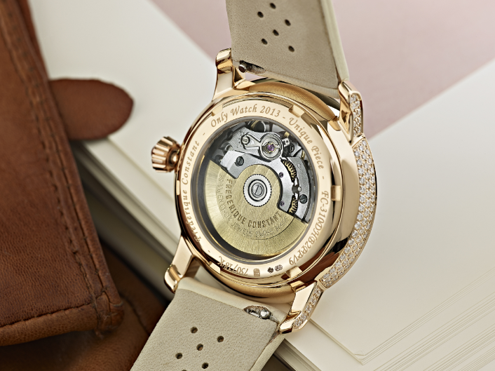 Frédérique Constant donará un exclusivo Double Heart Woman Set compuesto por un reloj Lady Automatic Double Heart con una deslumbrante caja en oro rosa de 18 que luce un pavé de diamantes. En el reverso de su caja, se encuentra grabada a mano la leyenda “Only Watch 2013”, un recordatorio del objetivo de la pieza.