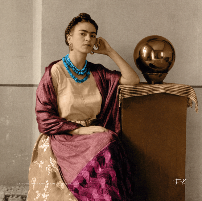Magdalena del Carmen Frida Kahlo Calderón, nace un 6 de julio de 1907 en Coyoacán, y bajo la ascendencia alemana y española. Construiría una carrera en el arte de la poesía y pintura aplaudido con fuerza, más, posterior a su muerte en 1954. Frida desarrollaría una obra pictórica en torno a su vida tormentosa, marcada principalmente por un accidente en autobús y enfermedades infantiles, lo que la llevaría a exhibir la dificultad para vivir y los múltiples dolores físicos producto de más de 30 cirugías. Esposa del gran muralista Diego Rivera, formó parte de la clase social y política más culta de nuestro país en la década de los 40 y hasta antes de su muerte, Frida transmite un extraordinario sentido del todo de acuerdo a su visión individual de la vida en cada una de sus obras.