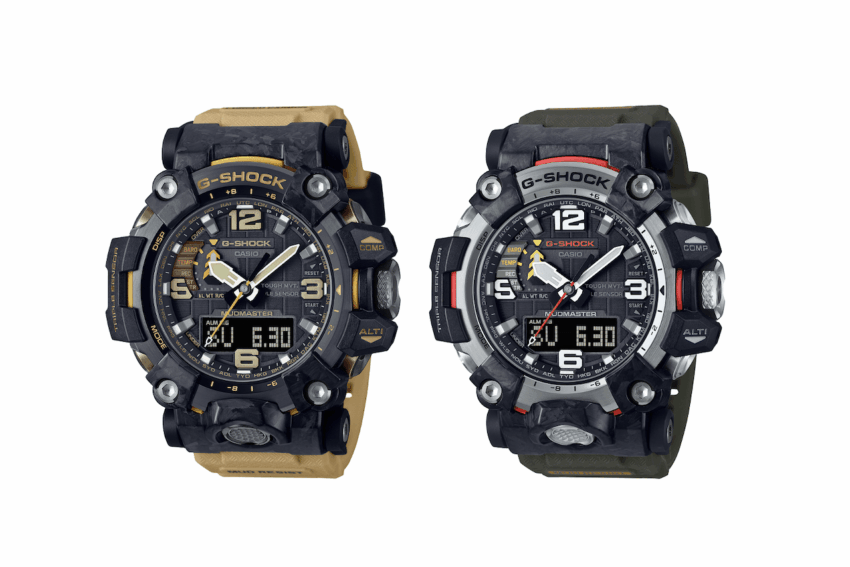 Por su parte, el G-Shock Master of G Mudmaster GWG-2000-1A5 Carbono Forjado tiene un diseño compacto gracias al engaste de carbono forjado y a la estructura de la carcasa con una protección central de carbono. En este caso, la correa de resina esta texturizada al estilo de los mangos de goma antideslizantes de alta resistencia.