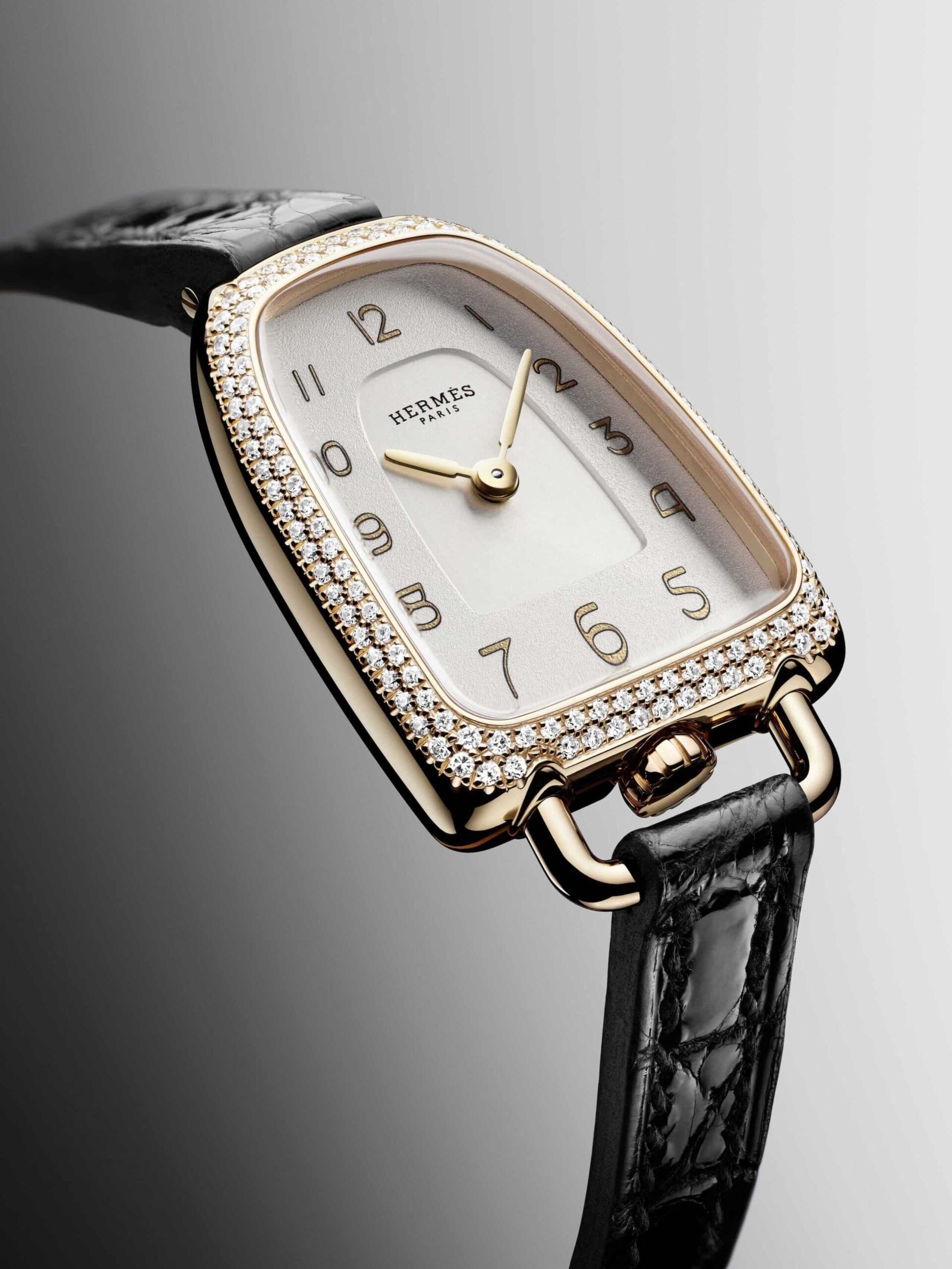 De esta manera, además de ser un regreso a los códigos ecuestres de la Casa con su silueta de estribo, ahora introduce una nueva versión de reloj-joya de 20 x 27.2 mm en acero sin engaste y dos con 134 diamantes engastados, ya sea en acero o en oro rosa.