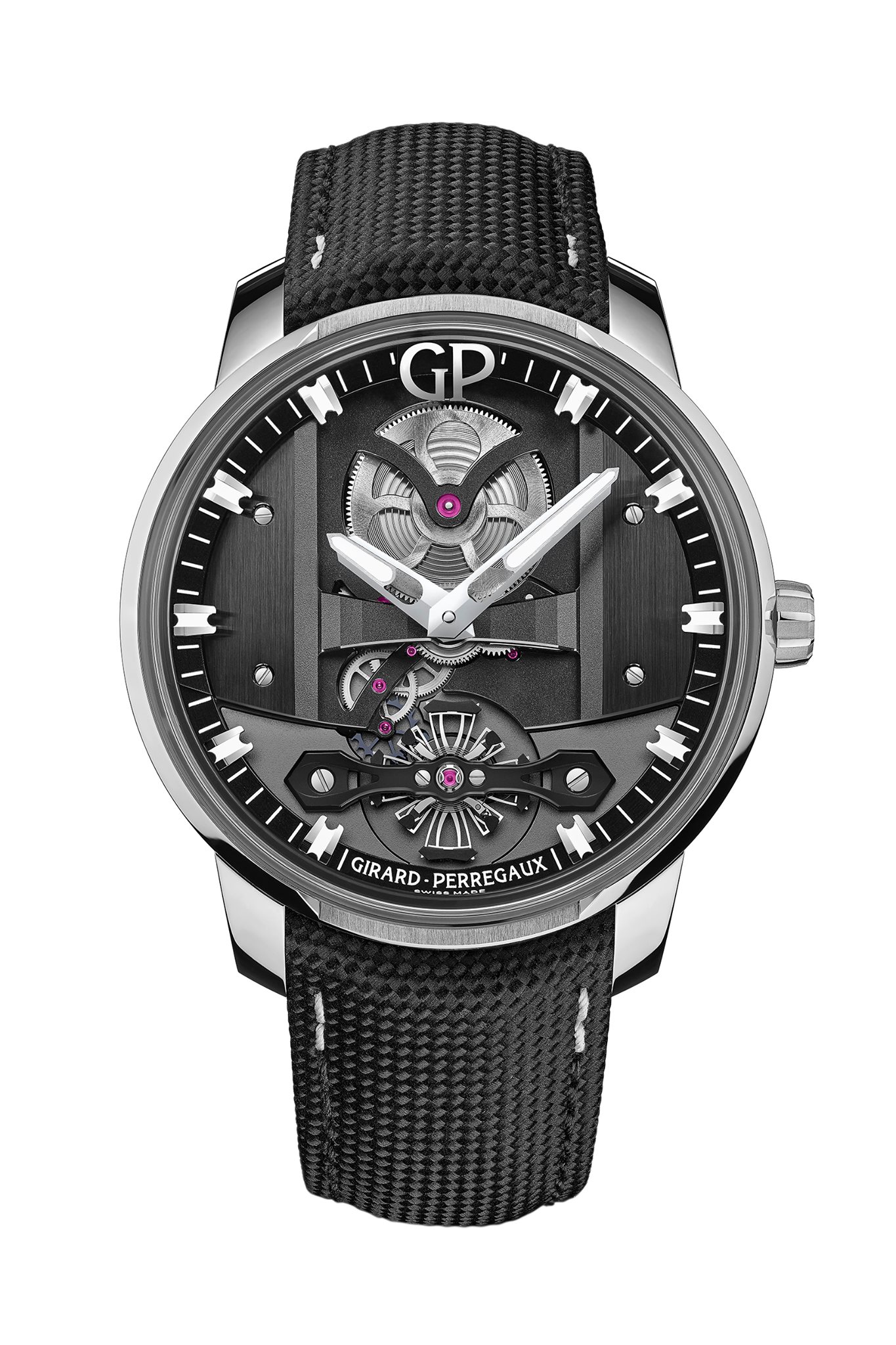 La pieza añade modernidad estilo e innovación en el movimiento, dando como resultado un reloj contemporáneo con un diseño fuerte. Visualmente complejo, la familia de los puentes está inspirada en lo que sin duda es la creación más emblemática de Girard-Perregaux, un reloj de bolsillo con tres puentes en forma de flecha.