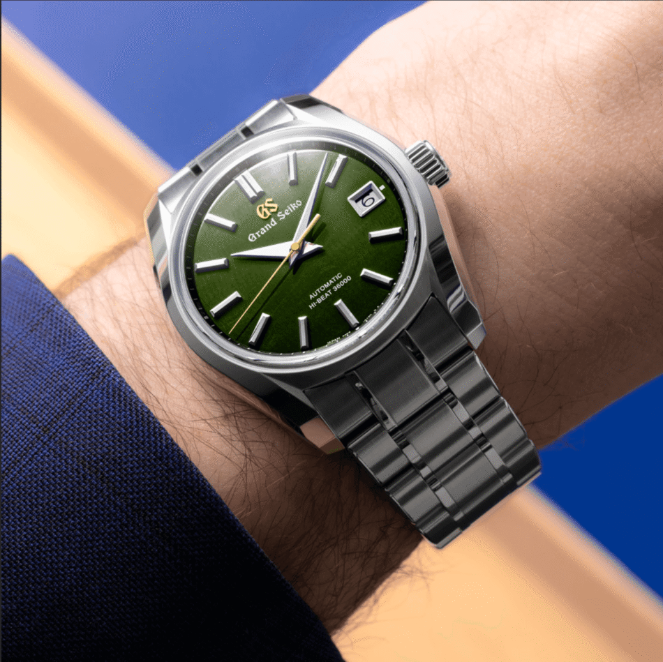 Qué mejor que llevar en la muñeca un Grand Seiko SBGH351 con las características de la séptima estación japonesa, Rikka, que anuncia el inicio del verano. Su diseño está basado en el clásico 62GS con sus líneas simples y superficies pulidas. La carátula despliega un verde profundísimo que evoca los pastizales arrullados por el viento, con índices y manecillas plateados. Los acentos de calidez los otorgan el segundero y el logotipo de Grand Seiko en dorado que abonan a la armonía estival de la pieza.