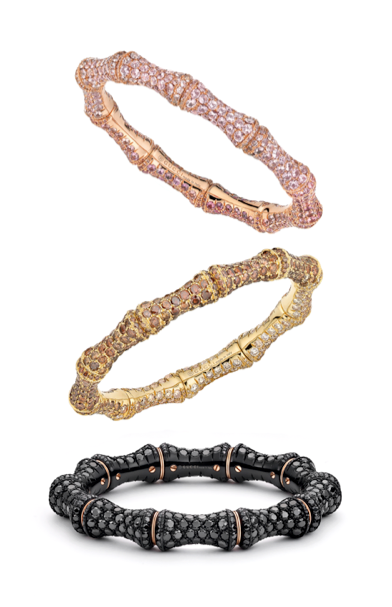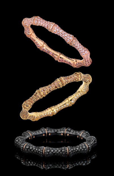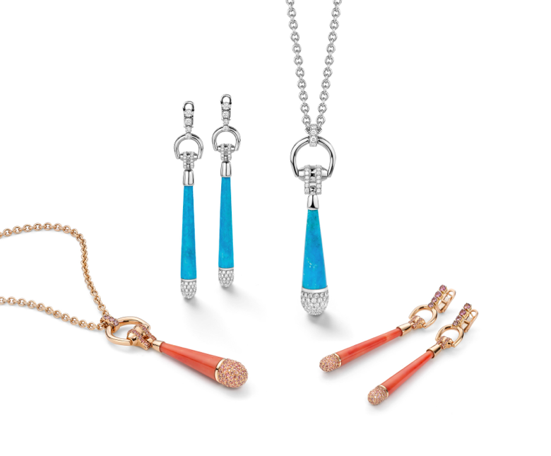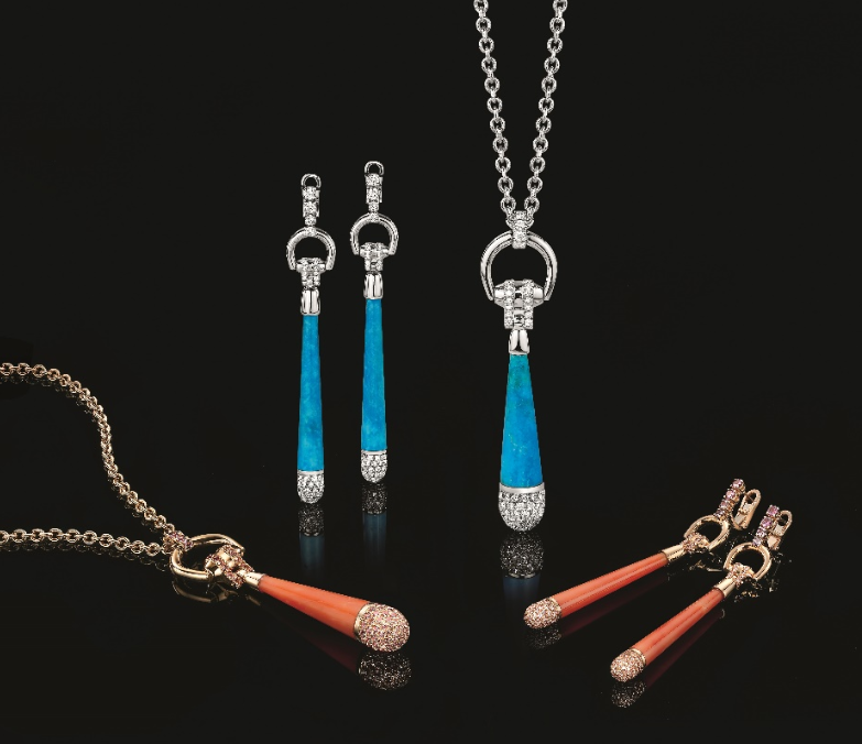 Bamboo y Horsebit, líneas ideales para incorporar los toques más innovadores debido a sus sinuosas formas y geometría, mientras que la paleta de gemas incluye: espinelas, diamantes y zafiros. Horsebit, por su parte, utiliza turquesas, corales y zafiros para potenciar la belleza del mineral más apreciado por las damas.