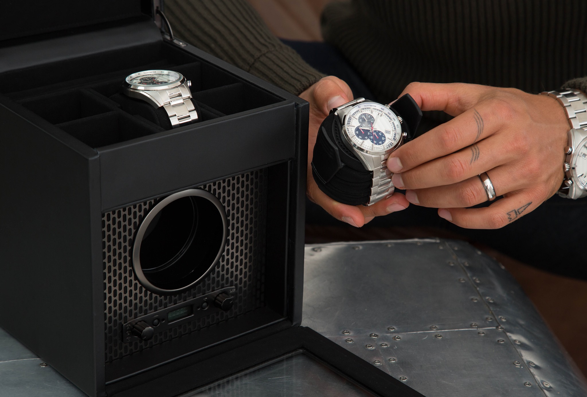 Para programar tu watch winder deberás conocer a detalle tu reloj y la manera en la que carga: unidireccional o bidireccionalmente. Debes saber el tiempo de reserva de marcha con la que cuenta para no exceder la carga en su programación. Recuerda que un reloj automático o manual cuenta con un sistema de seguridad, brida, que impide cualquier ruptura por sobrecarga. Pero también debes saber que –a menos de que cuente con sistema de fuerza constante– el mejor performance de la pieza se dará entre el 40 y el 80% de la autonomía marcada por el fabricante.
