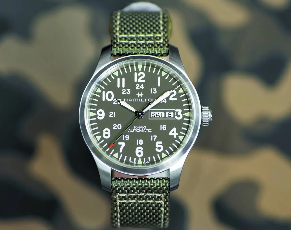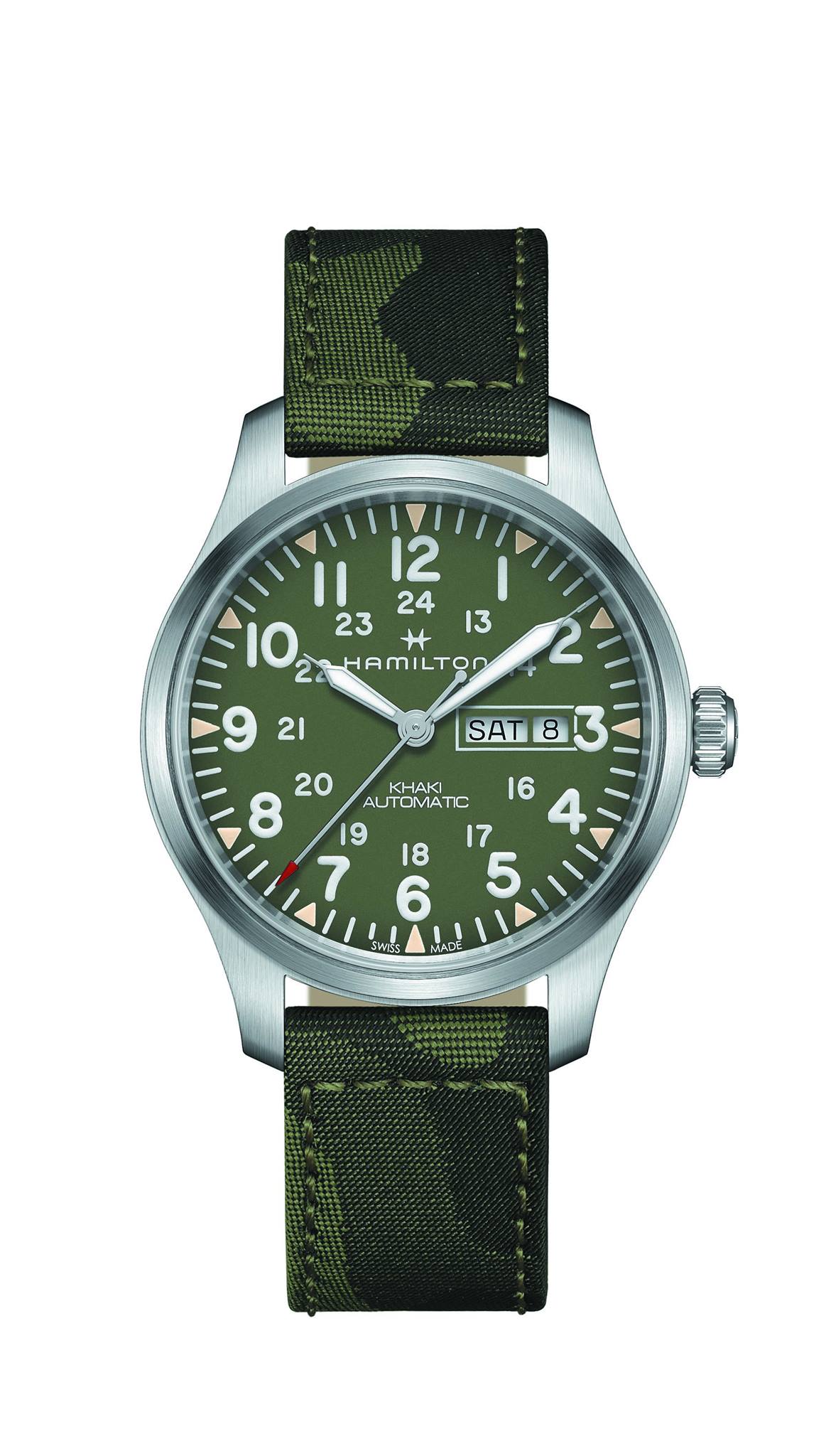 Hamilton Khaki Field Camouflage se presenta como un instrumento confiable y preciso con reserva de marcha de 80 horas.