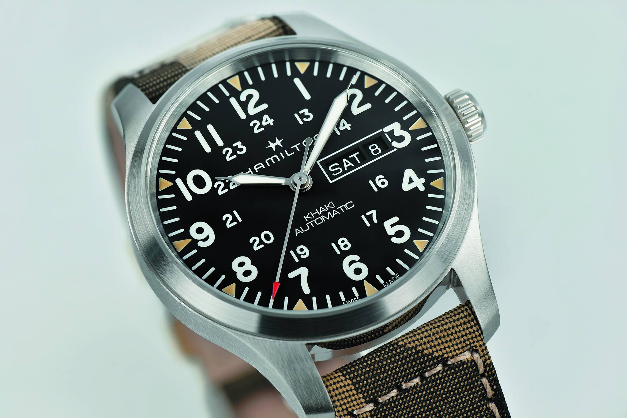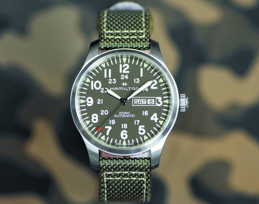 Hamilton reforzó su visión e inspiración militar durante la presentación de su colección más reciente en Baselworld de este año. Con base en ello, su línea Khaki, que forma parte de su gran arraigo belicoso y que despierta emociones de quienes buscan un reloj funcional.