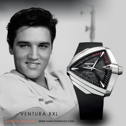 Presley rompió con todos los códigos de la música, el baile y la cultura popular del planeta, y así también su Ventura de Hamilton inaugurando el diseño triangular, futurista y visionario, posicionándose como un objeto de culto y precisión, tanto que nuestro virtuoso personaje lo portó en 1961 durante el rodaje de “Blue Hawaii”.