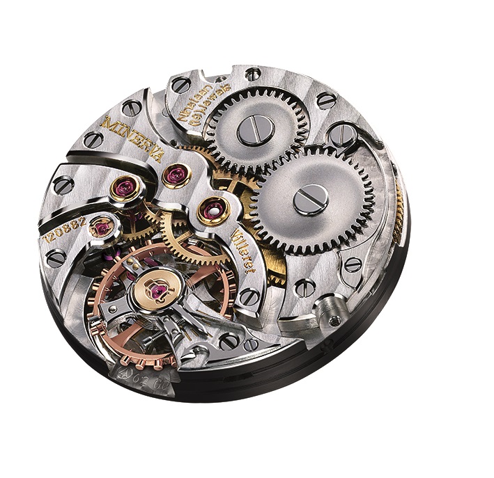 Inspirado por el famoso movimiento Pitágoras de Minerva de la década de los 50. Este movimiento está finamente terminado y reinterpretó al clásico desde 2003. Sin embargo, el motor de carga manual continúa vibrando a una tradicional frecuencia de 2.5 Hz, 18 mil alternancias por hora.