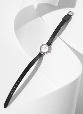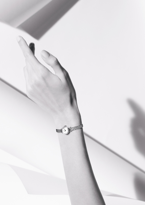 Disponible en configuración de oro rosa con correa de piel de ternera, becerro; oro rosa con brazalete, oro blanco con correa, oro blanco con brazalete, con diamantes o sin ellos, e incluso si lo prefiere con pulsera de satén, el reloj Faubourg para dama posee una caja de 15.5 mm, una carátula lacada en blanco con un diamante en posición de las 12 y dos manecillas para indicar el paso de las horas y minutos gracias a un mecanismo de cuarzo de origen suizo, no más, un sentido minimalista de la elegancia y clase que distinguen a la prestigiosa firma francesa: La montre Hermès.