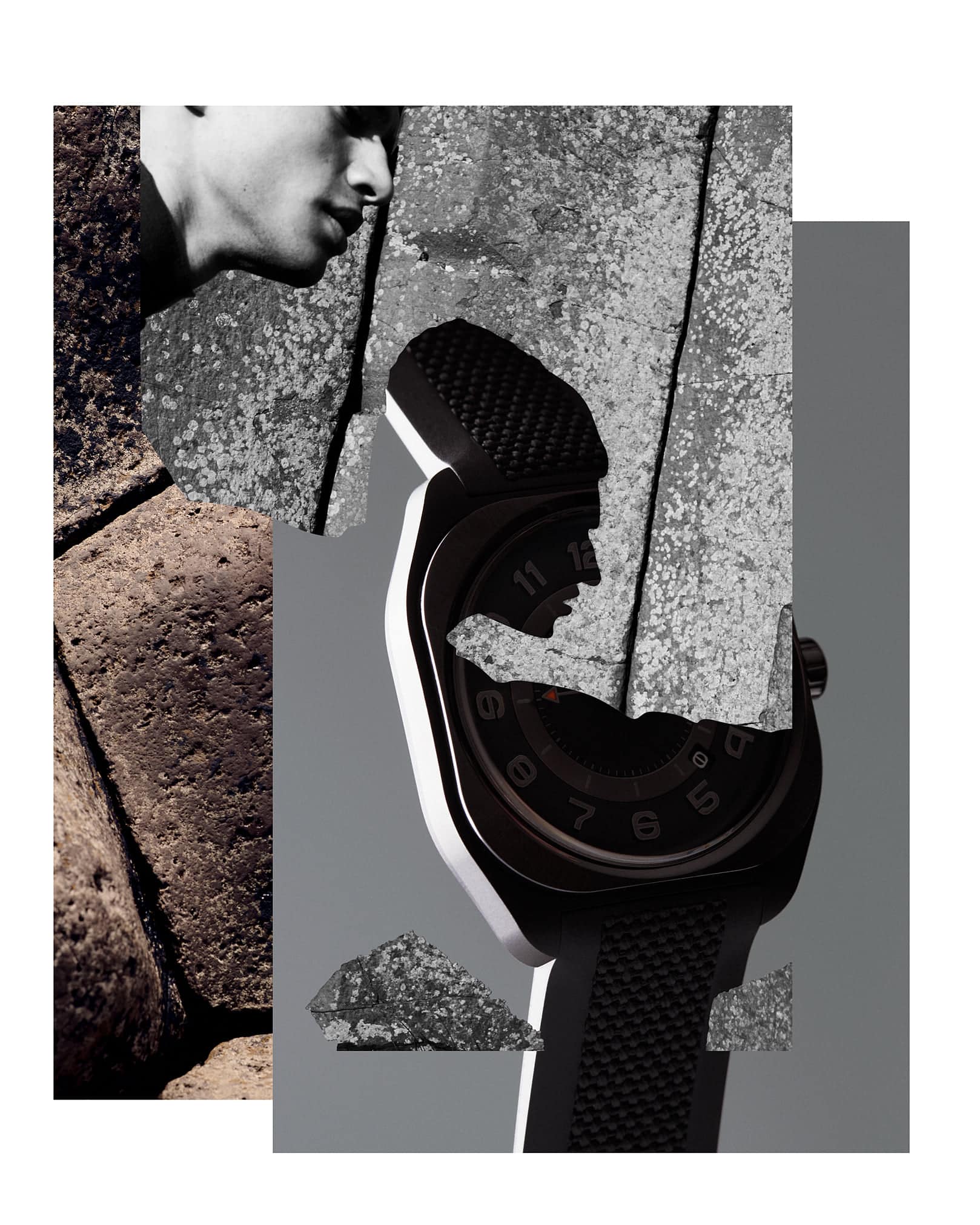 Un segundo modelo, disponible con una correa de caucho negra o naranja o una correa azul o negra/antracita con correas, tiene una caja de titanio con revestimiento DLC negro mate, un bisel de titanio cepillado y una carátula con revestimiento de níquel negro.