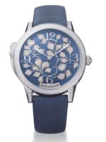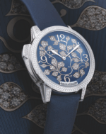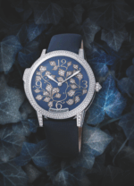 Tal es el caso de Jaeger-LeCoultre, que mediante su colección Rendez-Vous nos lleva al extremo de la imaginación con Ivy Minute Repeater, una pieza engastada con diamantes y decorada con una hiedra que cobra vida en la carátula cubierta de minerales preciosos, exhibiendo los índices de las horas (3, 6, 9 y 12), al tiempo que se abraza a la muñeca femenina gracias a un strap de satín color azul.