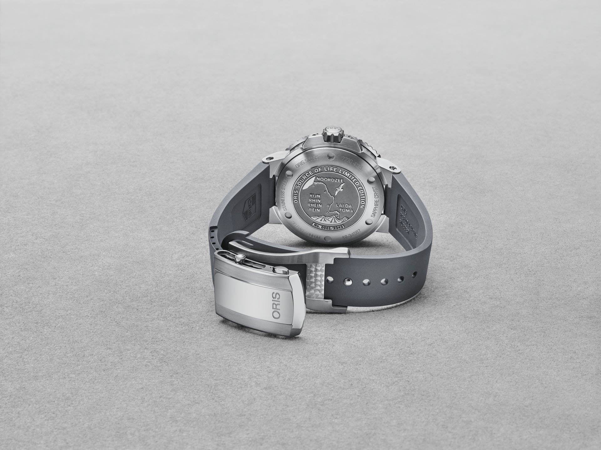Este 2018 la referencia presentada y titulada Source of Life, busca rendir homenaje al emblemático río Rin, la vía fluvial más utilizada de la Unión Europea, que tiene su nacimiento en los Alpes suizos y atraviesa Hölstein, sede de la firma relojera. Este río, alimenta con su flujo de agua clara y limpia a: Suiza, Austria, Liechtenstein, Alemania, Francia y los Países Bajos. Su estrecha relación con Oris es tan trascendente, que un arroyo producto del Rin que pasa junto a los talleres de la marca, lleva por nombre Orisbach. No se necesita ser demasiado observador para notar que de aquí surge el nombre de la compañía.