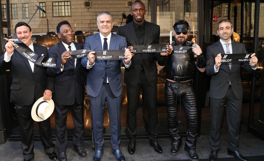 Manhattan se llenó de sorpresas al más puro estilo Hublot. Una multitud de personas se concentró en el cruce de la Quinta Avenida con la calle 57 para la ceremonia del corte del listón inaugural. Ahí Ricardo Guadalupe, CEO de Hublot, se unió a los embajadores de la marca, Usain Bolt y Pelé, para ejercer de anfitrión en la ceremonia de corte de cinta que se celebró fuera de la boutique antes de que los invitados pasaran a experimentar el Mundo de Hublot que se encontraba en su interior. Mientras los caballeros se reunían delante de la boutique, los ojos de los asistentes se dirigieron hacia el cielo para deleitarse con una pareja de bailarines de baile acrobático que iban descendiendo desde la azotea del edificio, bailando por la increíble fachada, hasta que llegaron al suelo para regalar a Usain Bolt su último reloj de edición limitada, creado justo a tiempo para los próximos Juegos Olímpicos que se celebrarán este verano en Brasil, país del que es oriundo Pelé. A continuación se instó a los invitados, entre los que se incluían amigos de la marca, VIP y medios de comunicación locales e internacionales, a que entrasen en la nueva boutique para explorarla. Tras la dinámica coreografía, Peter Marino, arquitecto tanto del edificio como de la boutique, cortó el listón junto con Ricardo Guadalupe y Usain Bolt.