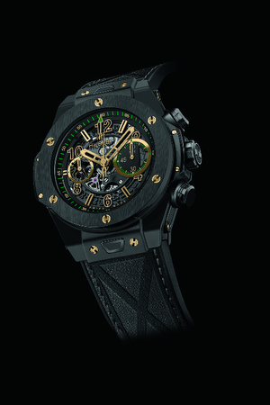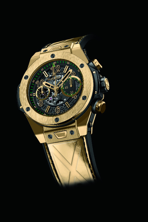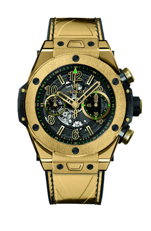 La pieza, disponible en una versión de oro amarillo y en otra de cerámica, cuenta con un diseño deportivo y masculino en tonos verdes y dorados, un guiño a los colores distintivos de Usain Bolt, y una correa con un grabado de la bandera jamaicana para rendir homenaje al país de origen de Usain.