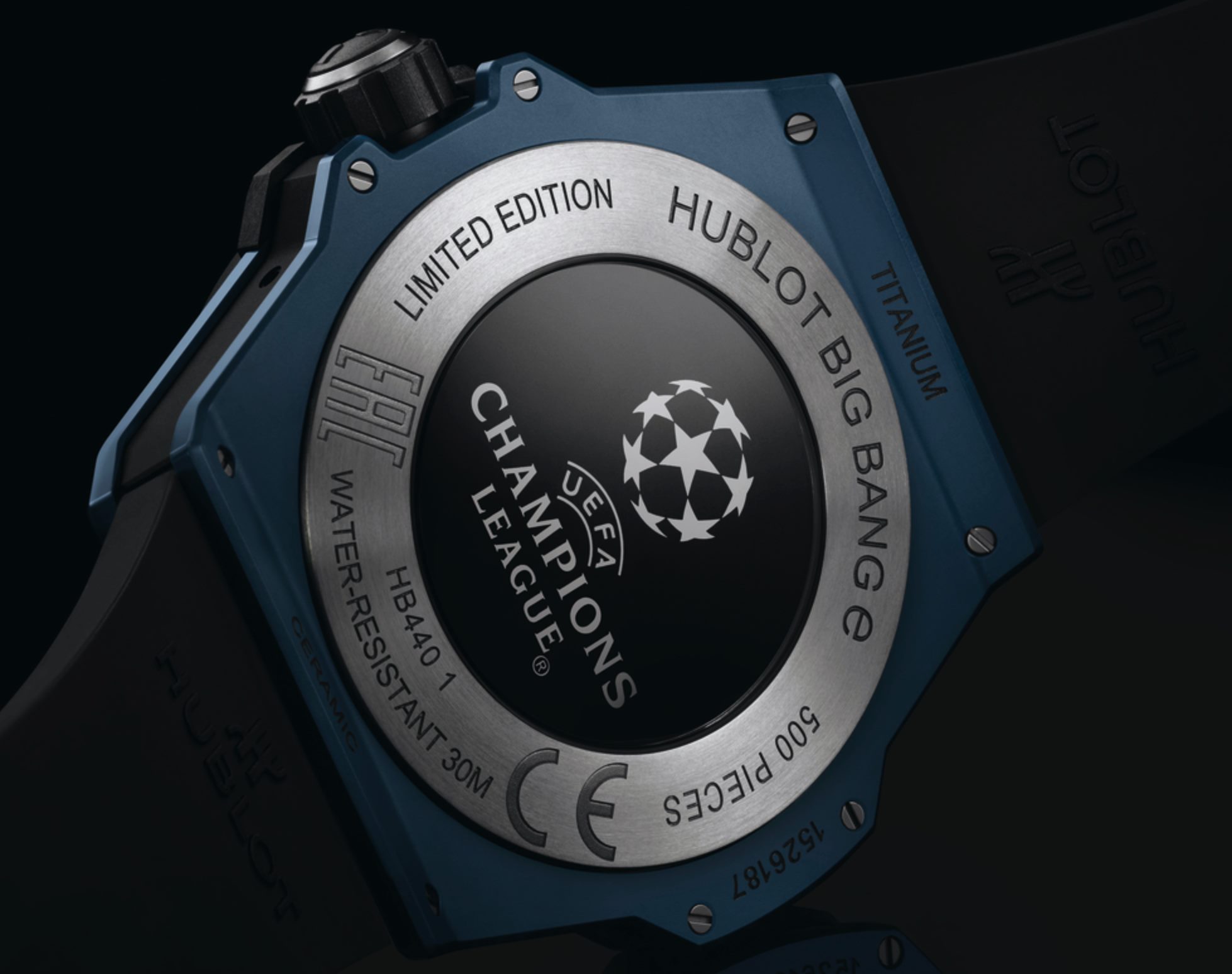 La nueva pieza se basa en el Big Bang e tradicional, no obstante cuenta con una caja de cerámica ligera y con correa de caucho. Todo el reloj es azul, tono oficial y característico de la UEFA Champions League.