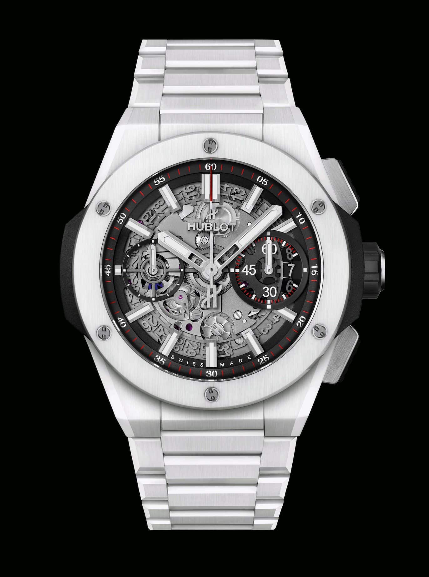 Otro cambio estilístico resulta apreciable en los pulsadores, que recuperan la estética del modelo original de 2005 y cuyo juego de ángulo y bisel se prolonga hasta el brazalete en una alternancia entre acabado pulido y satinado. En lo que respecta al motor, se trata del movimiento de desarrollo interno Unico – V2, el HUB1280, que marca el ritmo y presenta una serie de novedades respecto a su predecesor, el movimiento Unico HUB1242 como, por ejemplo, la eliminación del portaescape, el sistema de cuerda automática más plano con un grosor del movimiento más fino de 1.3 mm, además de cuatro nuevas innovaciones técnicas patentadas (embrague de segundos oscilante, sistema de fricción de cronógrafo regulable con bola, sistema de retención del rochete con rodajes unidireccionales y sistema de ajuste preciso de la raquetería). Esta V2 del movimiento Unico presenta una arquitectura rediseñada para facilitar el montaje y mejorar la visibilidad de su funcionamiento.