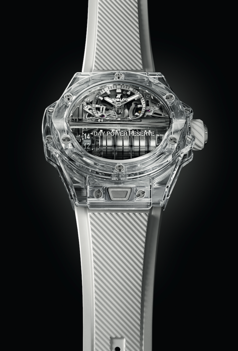 “La ultra compleja arquitectura del movimiento ha sido completamente desarrollada para encajar en la caja del Big Bang, que muestra la excepcional estética y rendimiento. El nuevo Big Bang MP-11 encarna la fusión de una mecánica relojera reinventada con estos exclusivos materiales” declaró Ricardo Guadalupe, CEO de Hublot.