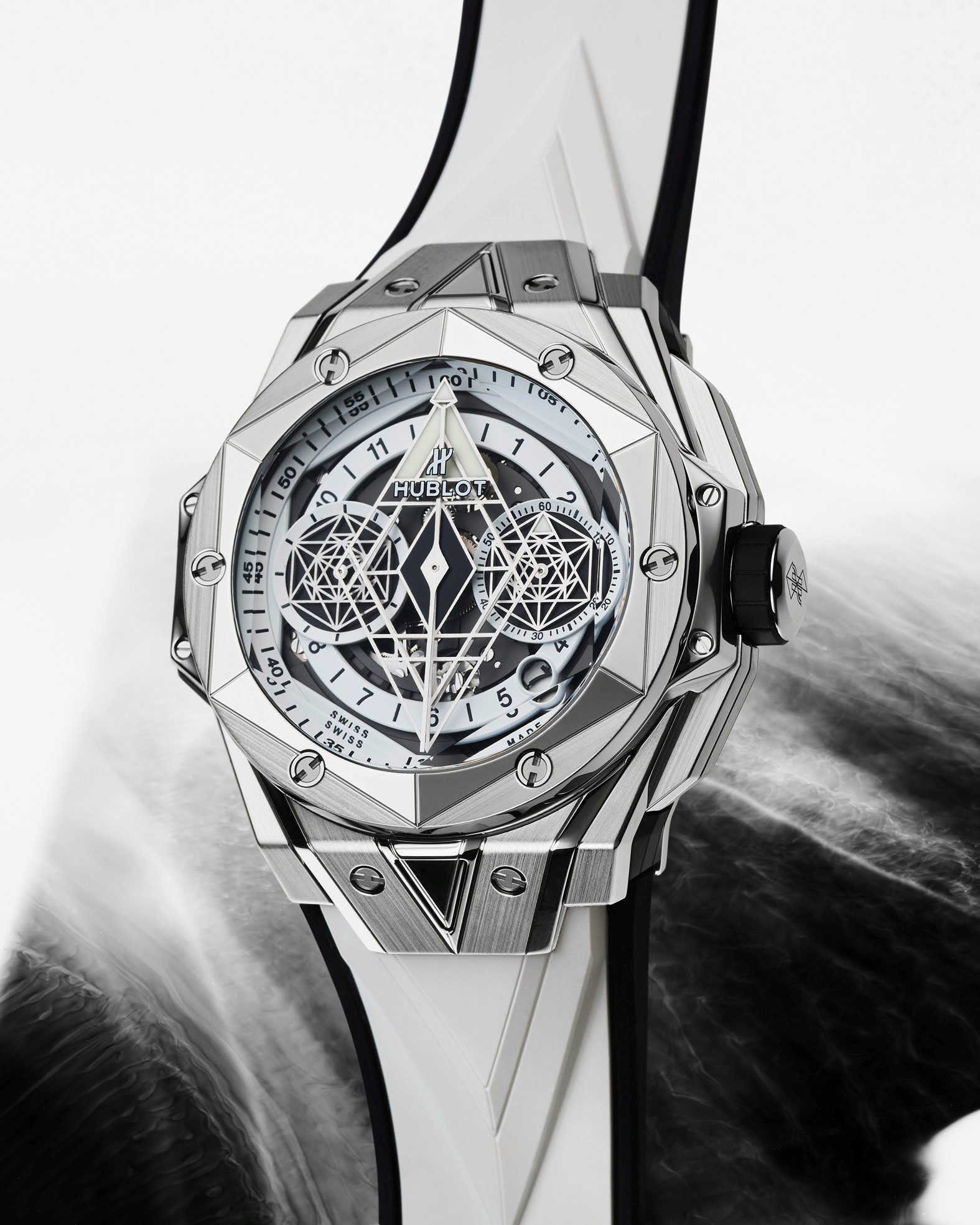El nuevo Big Bang Sang Bleu II es el complemento relojero del tatuaje: con una precisión intemporal, es el resultado de la fusión entre materiales y del dominio de la geometría del fundador de Sang Bleu.