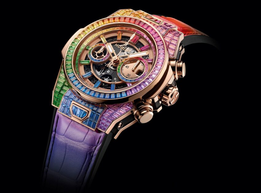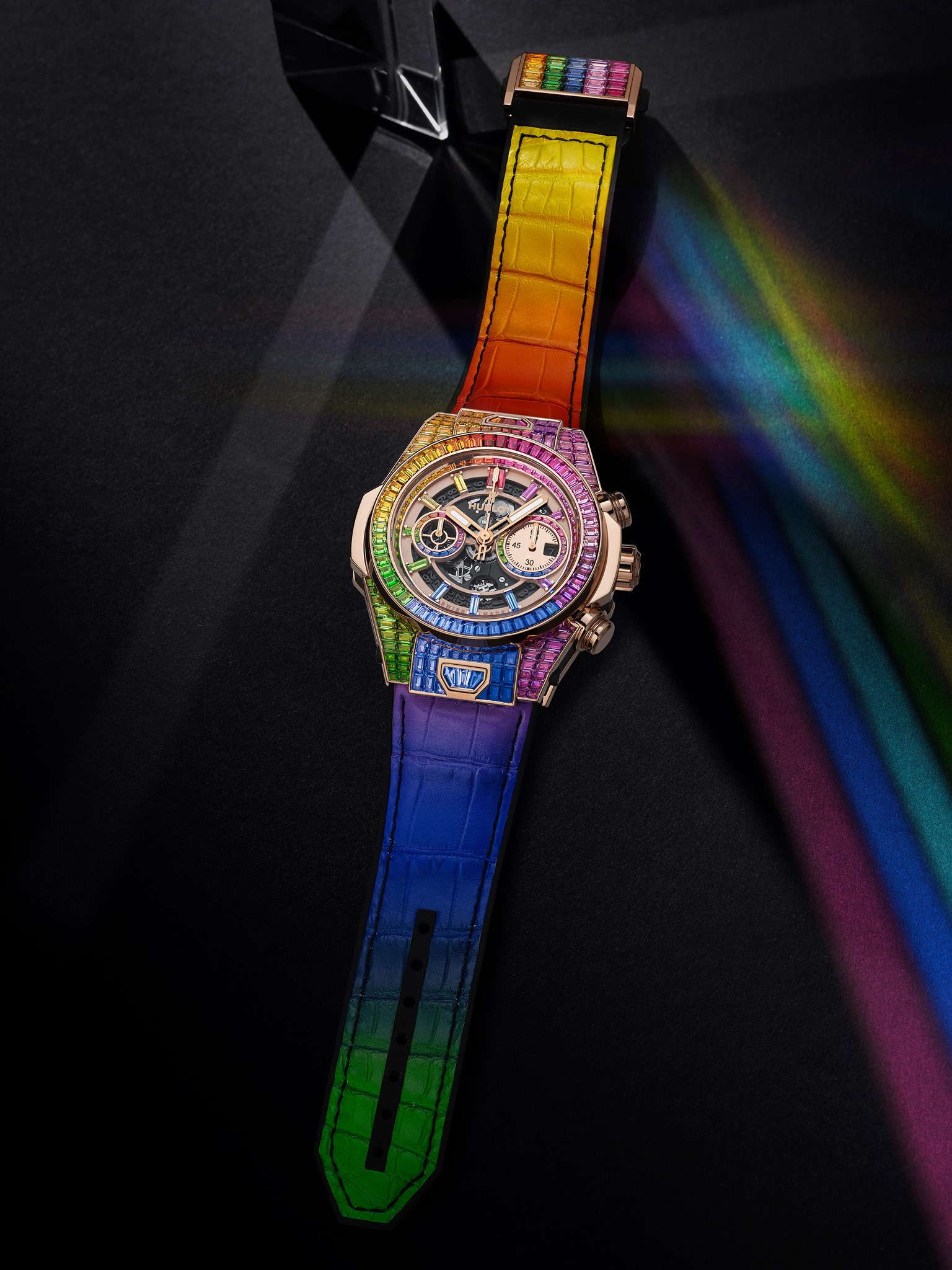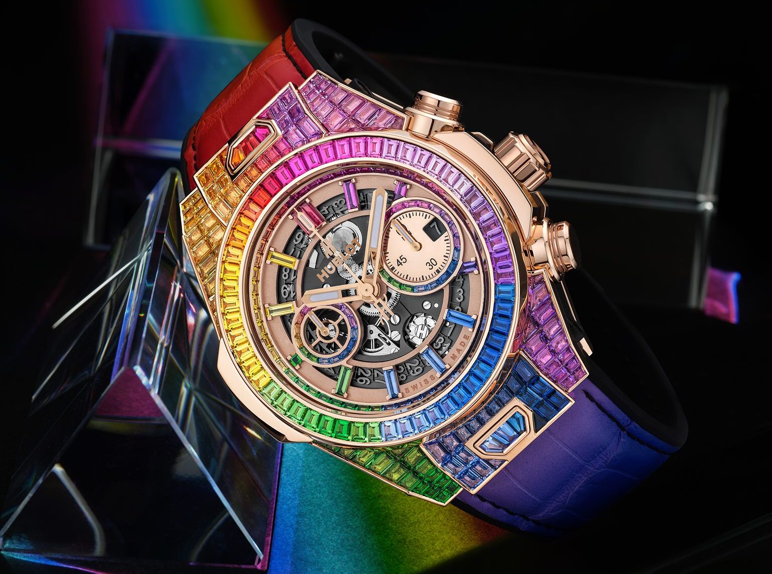 Los relojes Rainbow se han convertido en un clásico dentro de Hublot, este año –tan solo– se han presentado tres ejecuciones bajo este estilo: Spirit of Big Bang, Big Bang e, y ahora Big Bang…