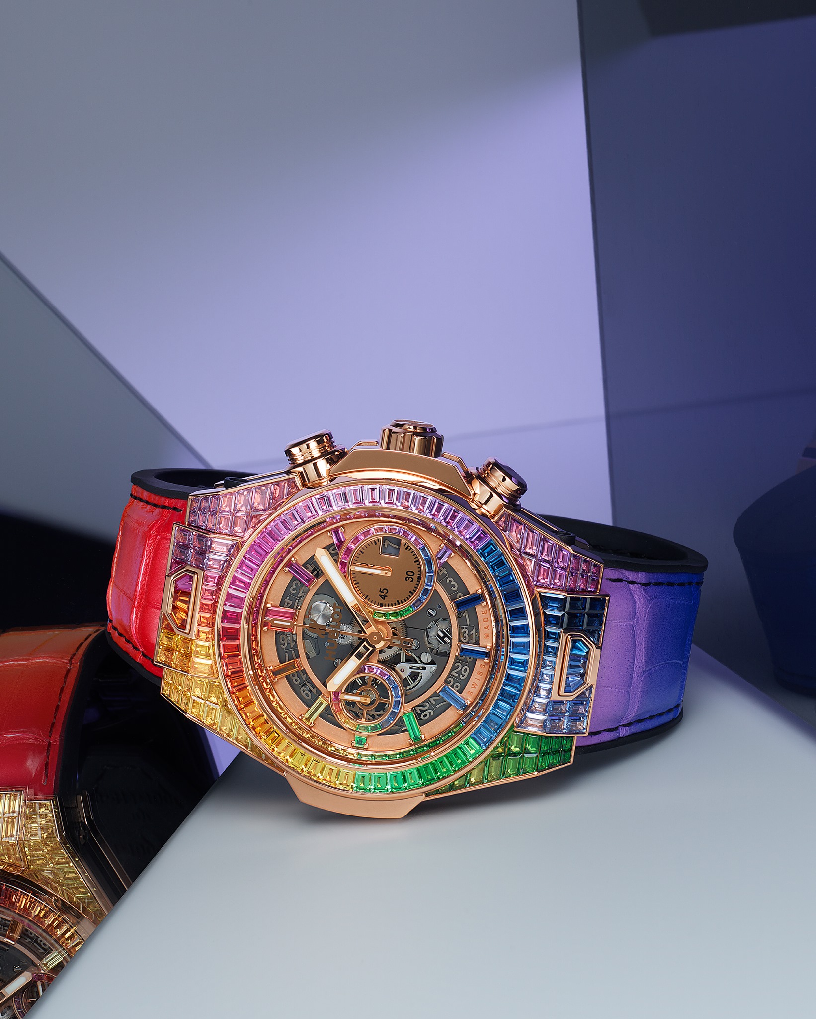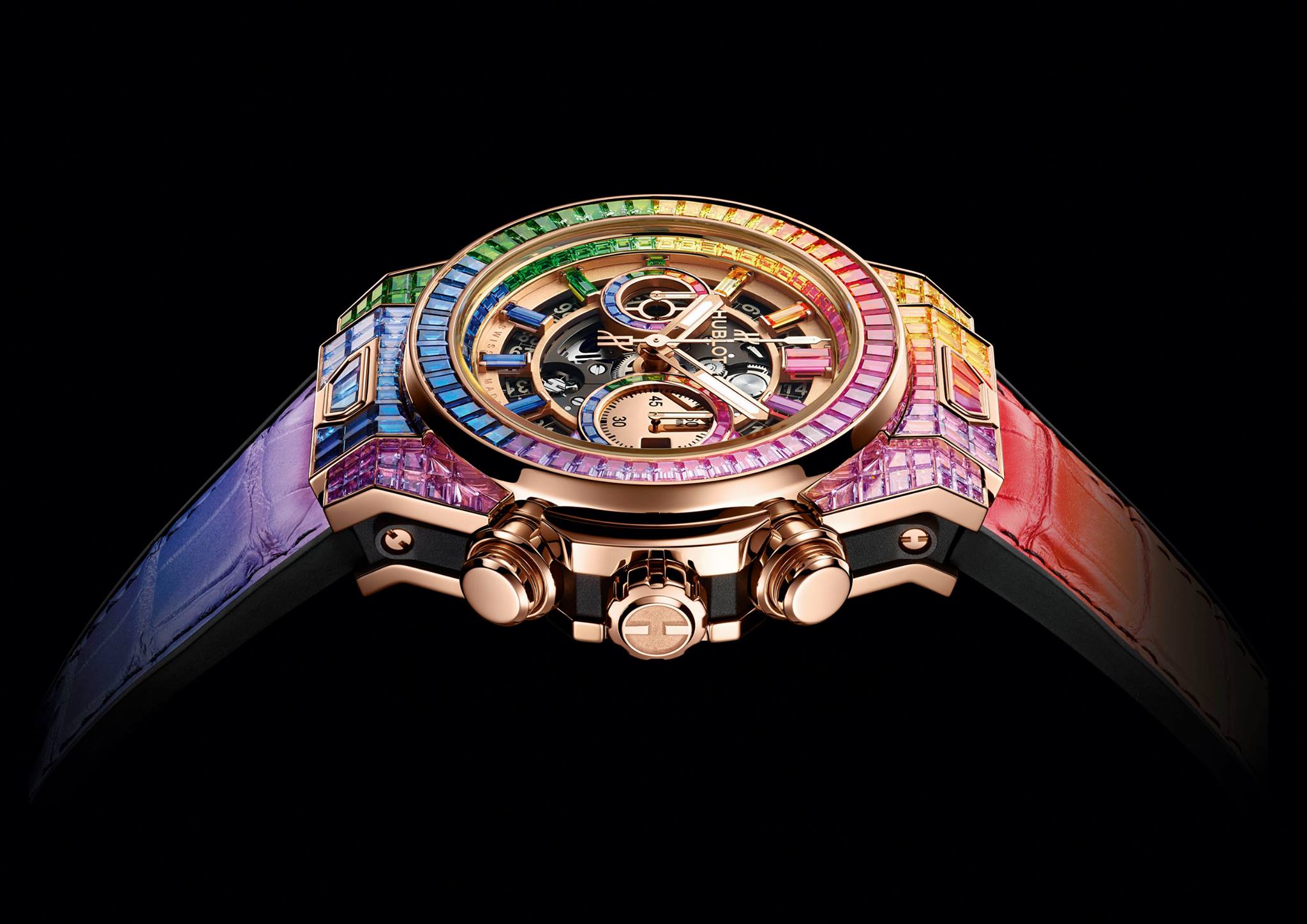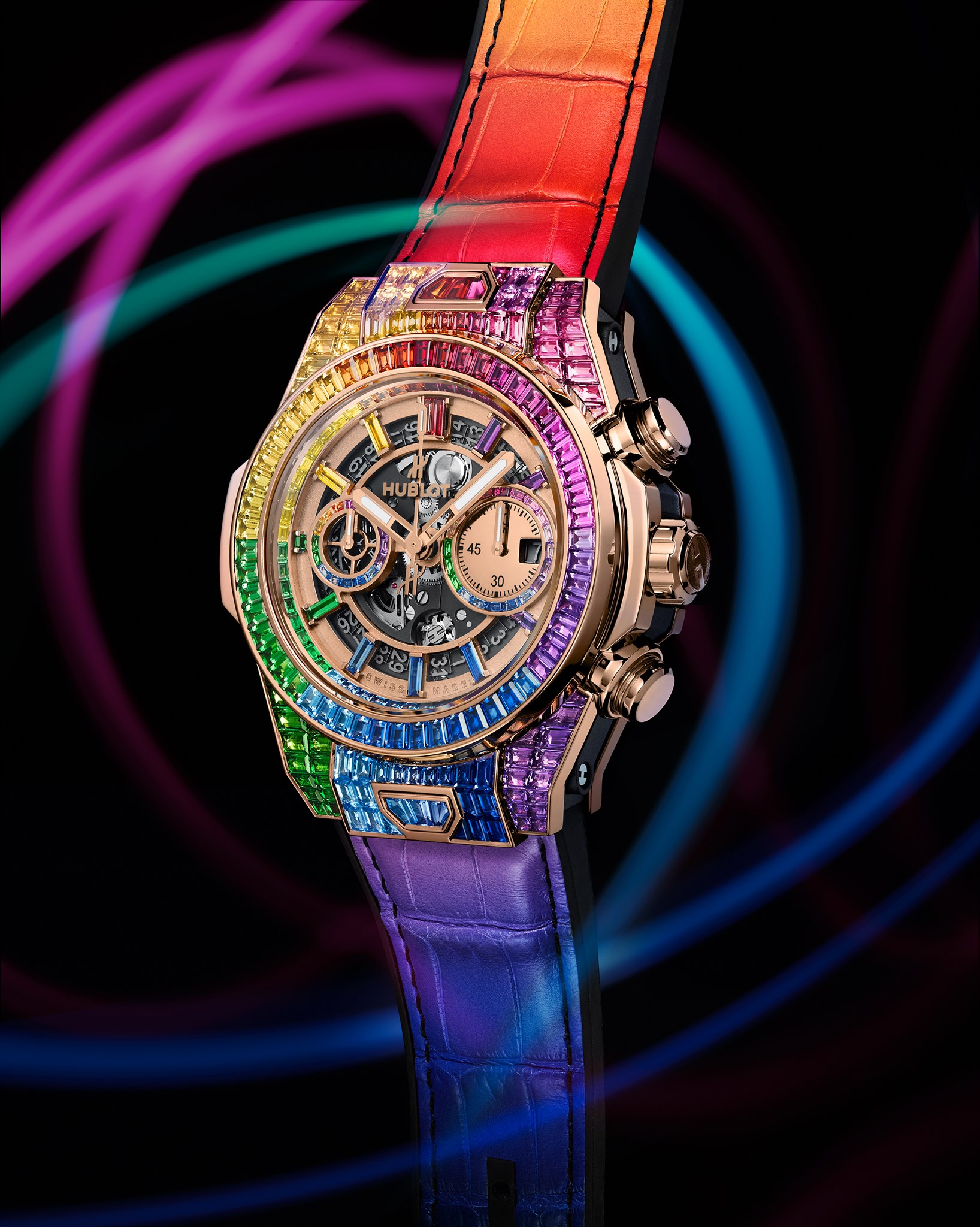 Los relojes Rainbow se han convertido en un clásico dentro de Hublot, este año –tan solo– se han presentado tres ejecuciones bajo este estilo: Spirit of Big Bang, Big Bang e, y ahora Big Bang…