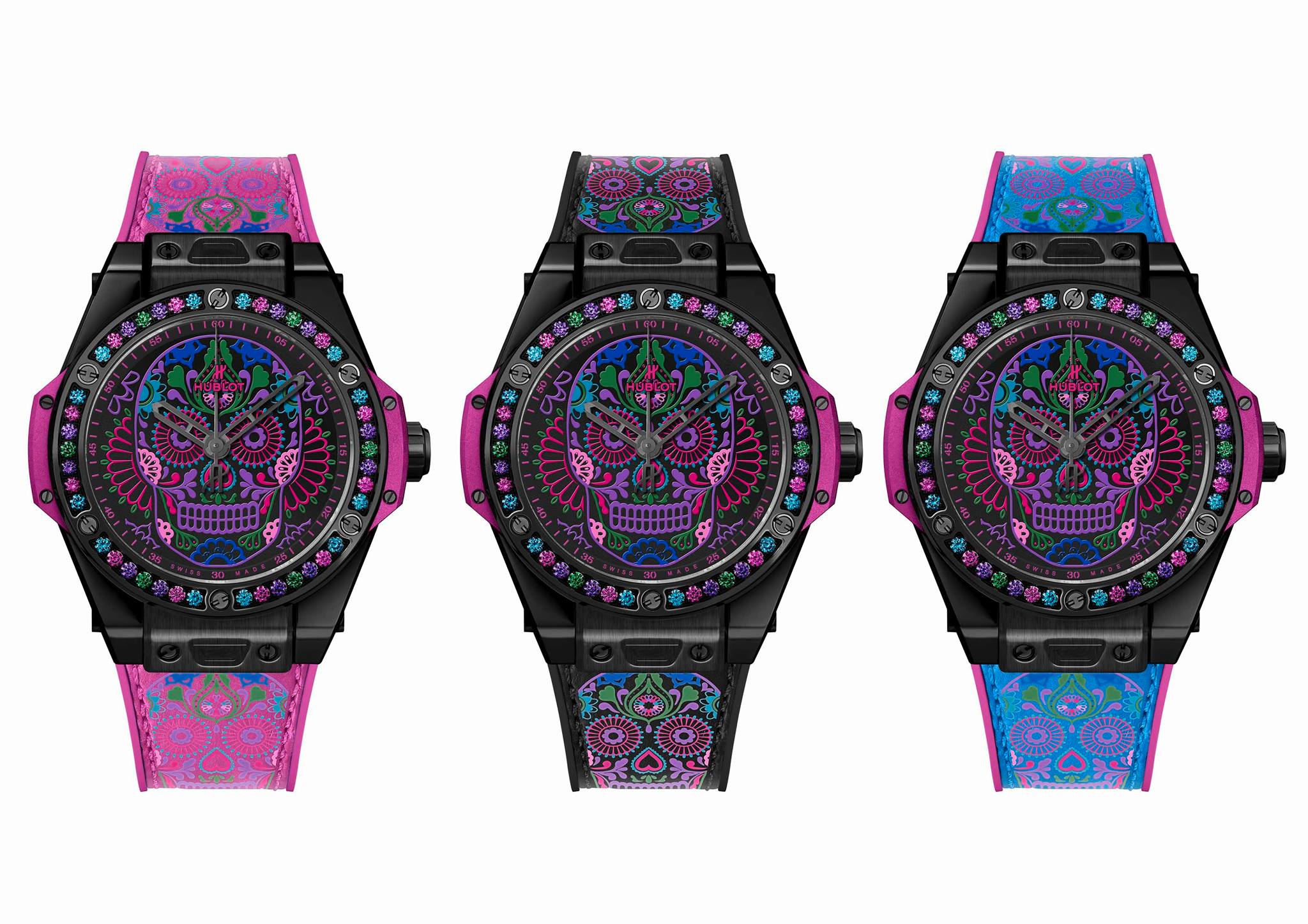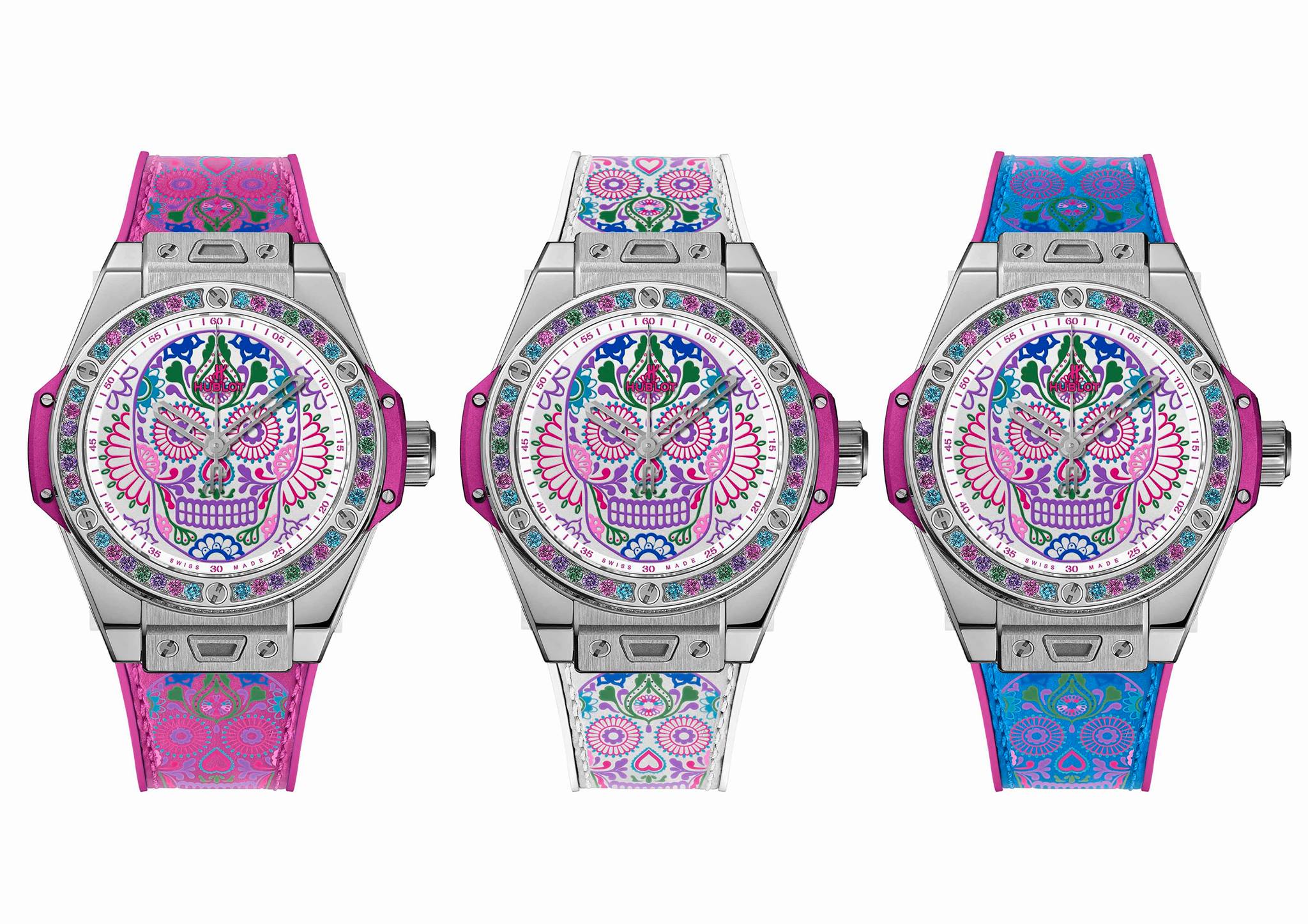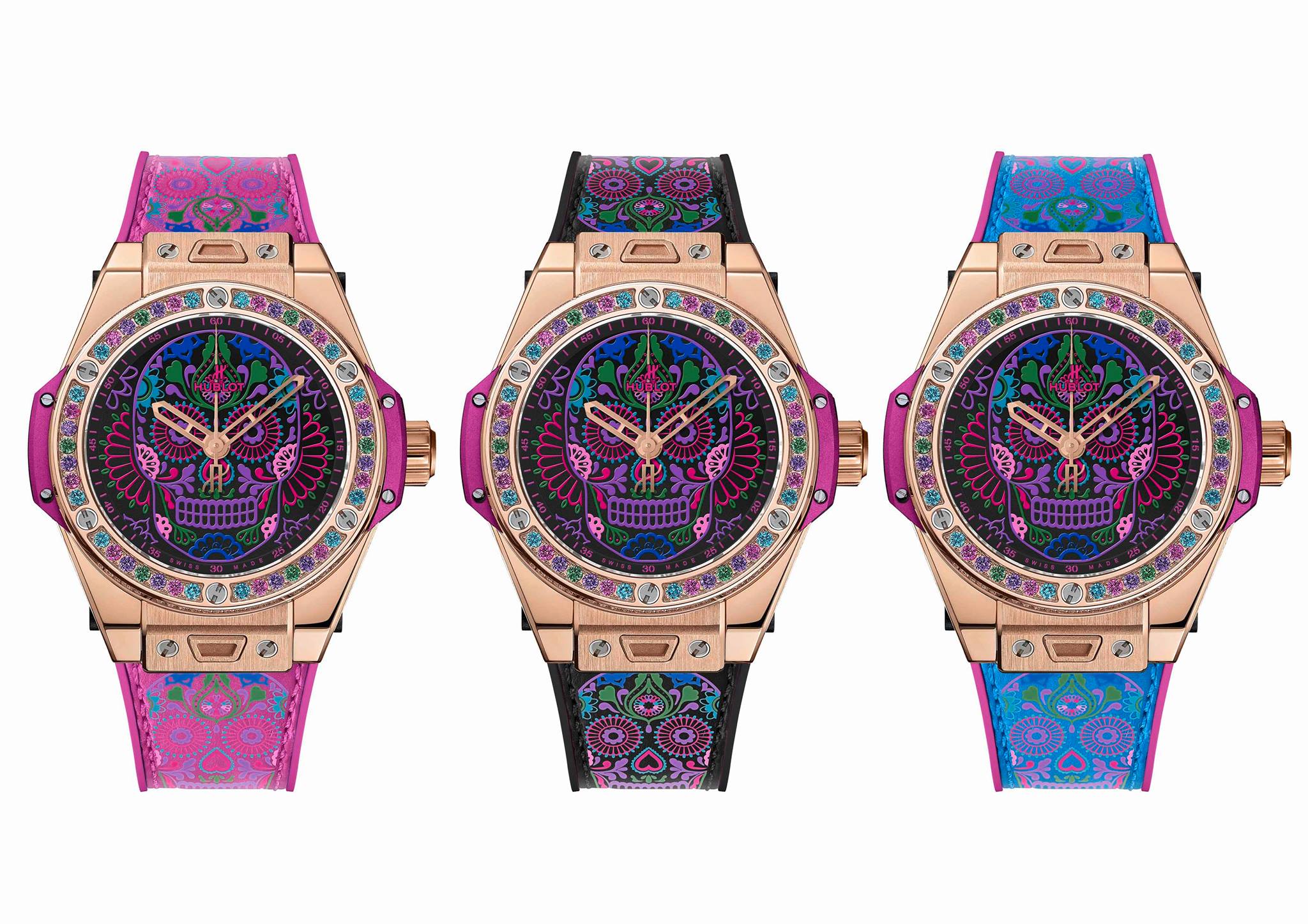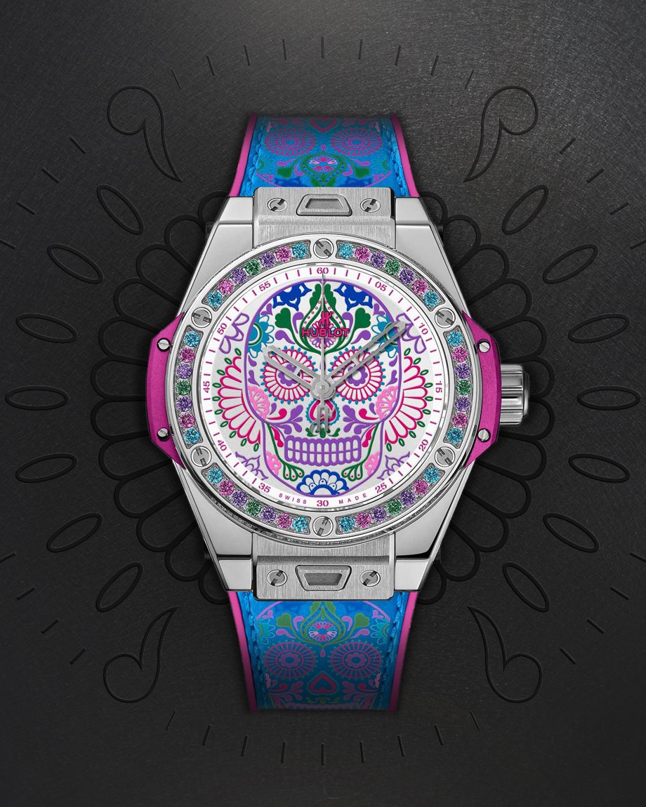En celebración de las tradiciones católicas mexicanas y en honor a los Santos difuntos, Hublot lanza una colección conformada por tres diferentes referencias estéticas, las cuales lucen la inspiración de la tradicional calavera de azúcar –Sugar Skull–, y que forman parte de la línea Big Bang One Click, que posibilita el intercambio de las diferentes correas.