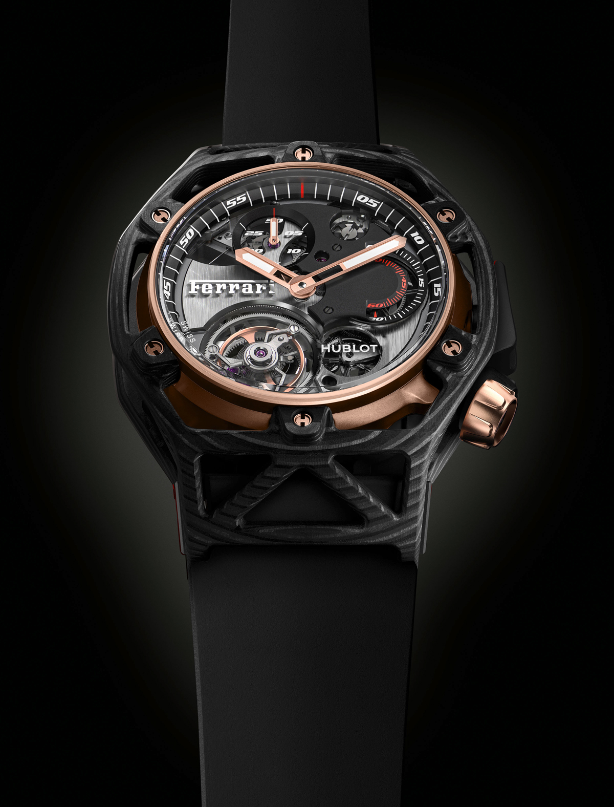 “Ferrari representa el pináculo del arte automotriz, algo de lo que en Hublot estamos muy orgullosos. La pieza única Techframe es el resultado de un esfuerzo en equipo. Esta es una pieza que combina nuestra experiencia de manufactura y la cooperación de Ferrari y su HQ en Maranello, finalizando con un reloj extraordinario creado en Nyon, Suiza, que celebra el aniversario del Cavallino Rampante”. Ricardo Guadalupe.
