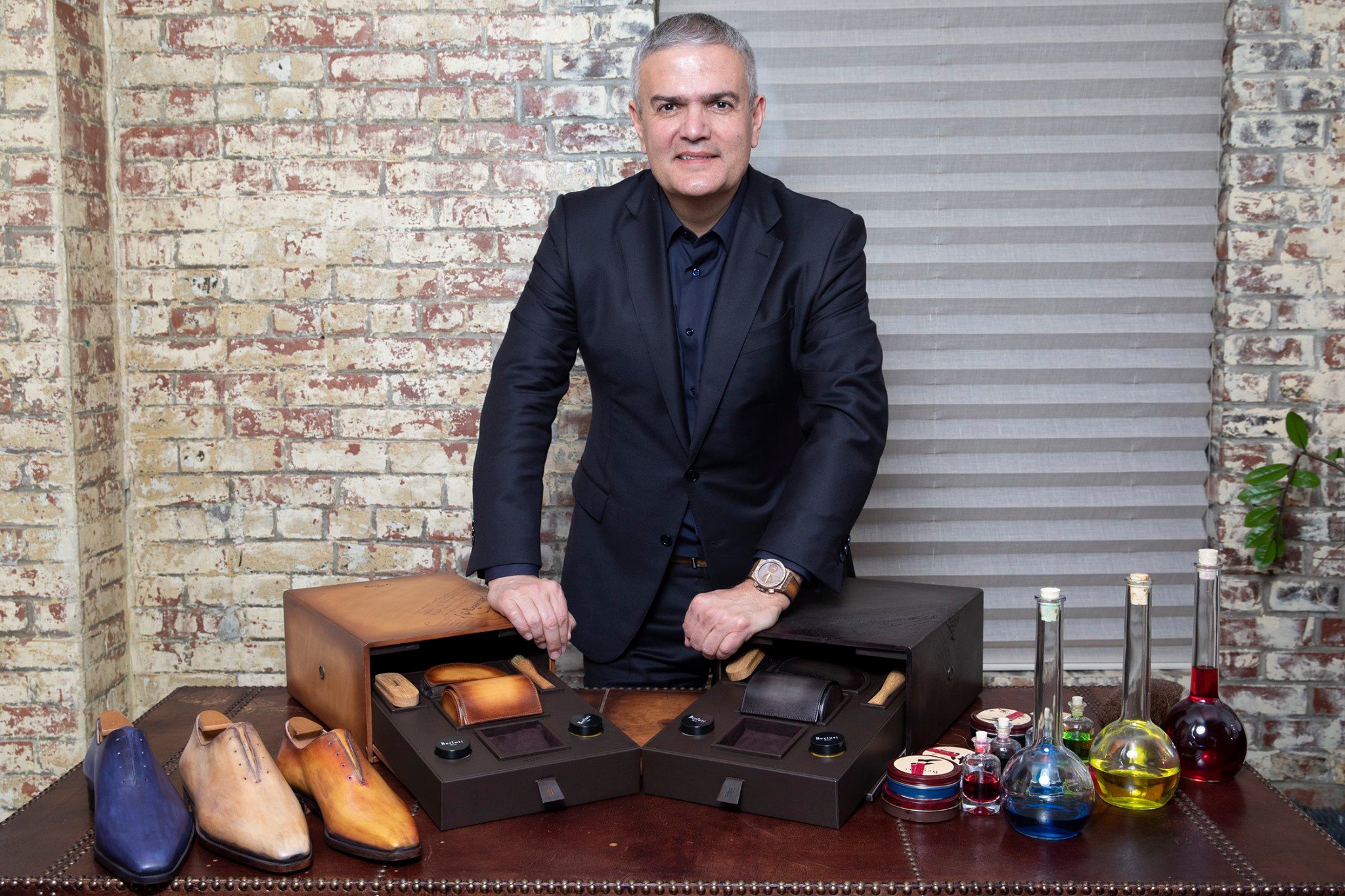A los ojos de Olga Berluti, no hay nada más hermoso que un zapato de cuero oscurecido por el tiempo. Para ella, tiene alma. Esto la ha llevado a desarrollar una increíble gama de colores –un espectro que va de lo claro a lo oscuro– que hace que sus zapatos sean únicos, igual que lo son sus dueños. Transportar todo esto al mundo de la relojería fue un desafío del que disfrutamos mucho. Trasladar a nuestras cajas la pátina y el Scritto, dos sellos distintivos del savoir-faire de Berluti, ha sido una experiencia apasionante. Ricardo Guadalupe, CEO de Hublot.