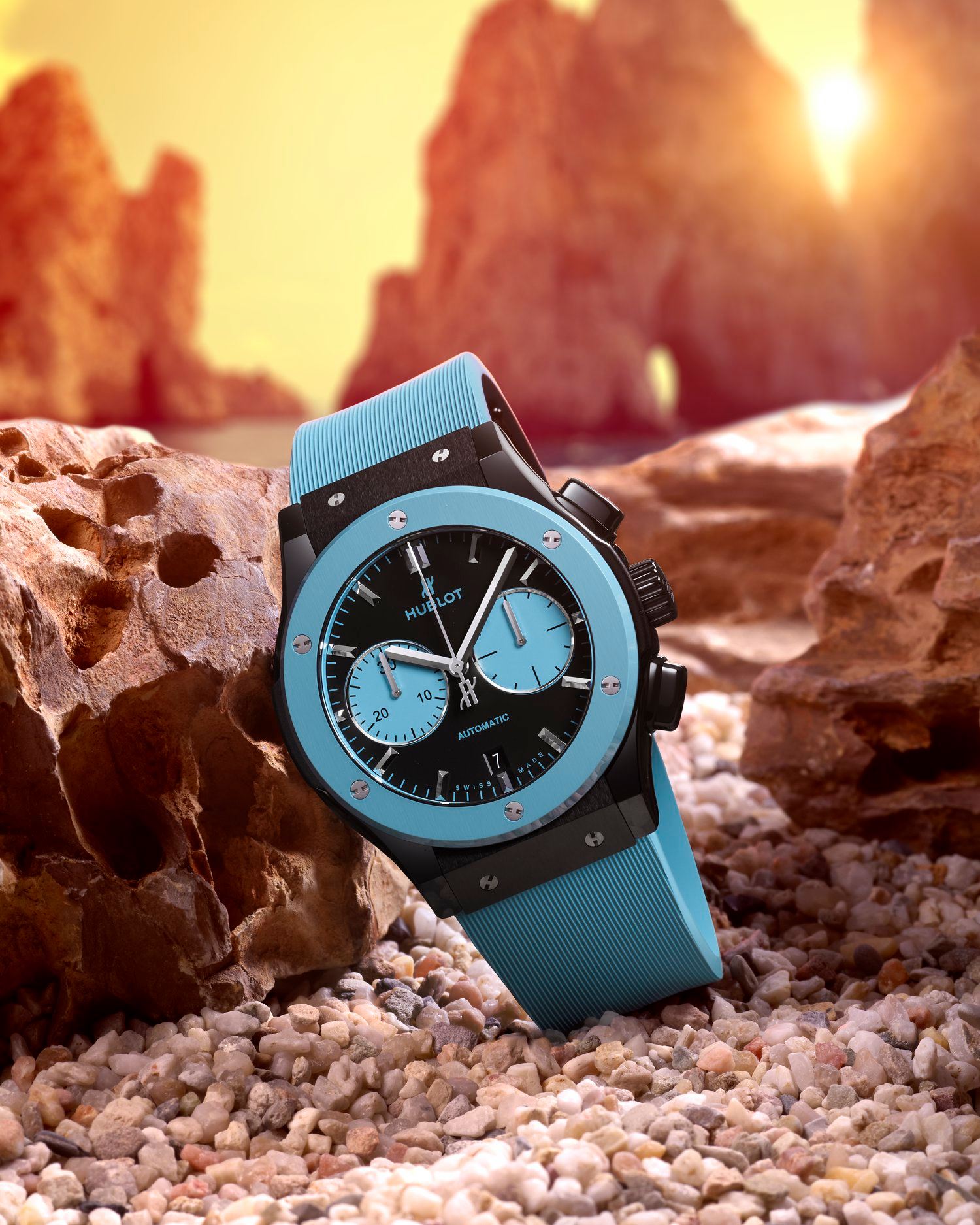 Hublot lanza una nueva pieza de Edición Especial en homenaje a la isla de Capri del sur de Italia, e inspirada particularmente en la Gruta Azul, un fenómeno natural que genera un tono azul muy especial al interior. Contrastando entre azul intenso y colores esmeralda, es un escenario natural hermoso y un must visit para los turistas del sur de Italia.
