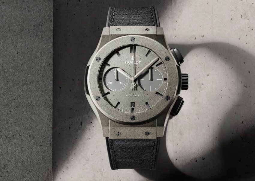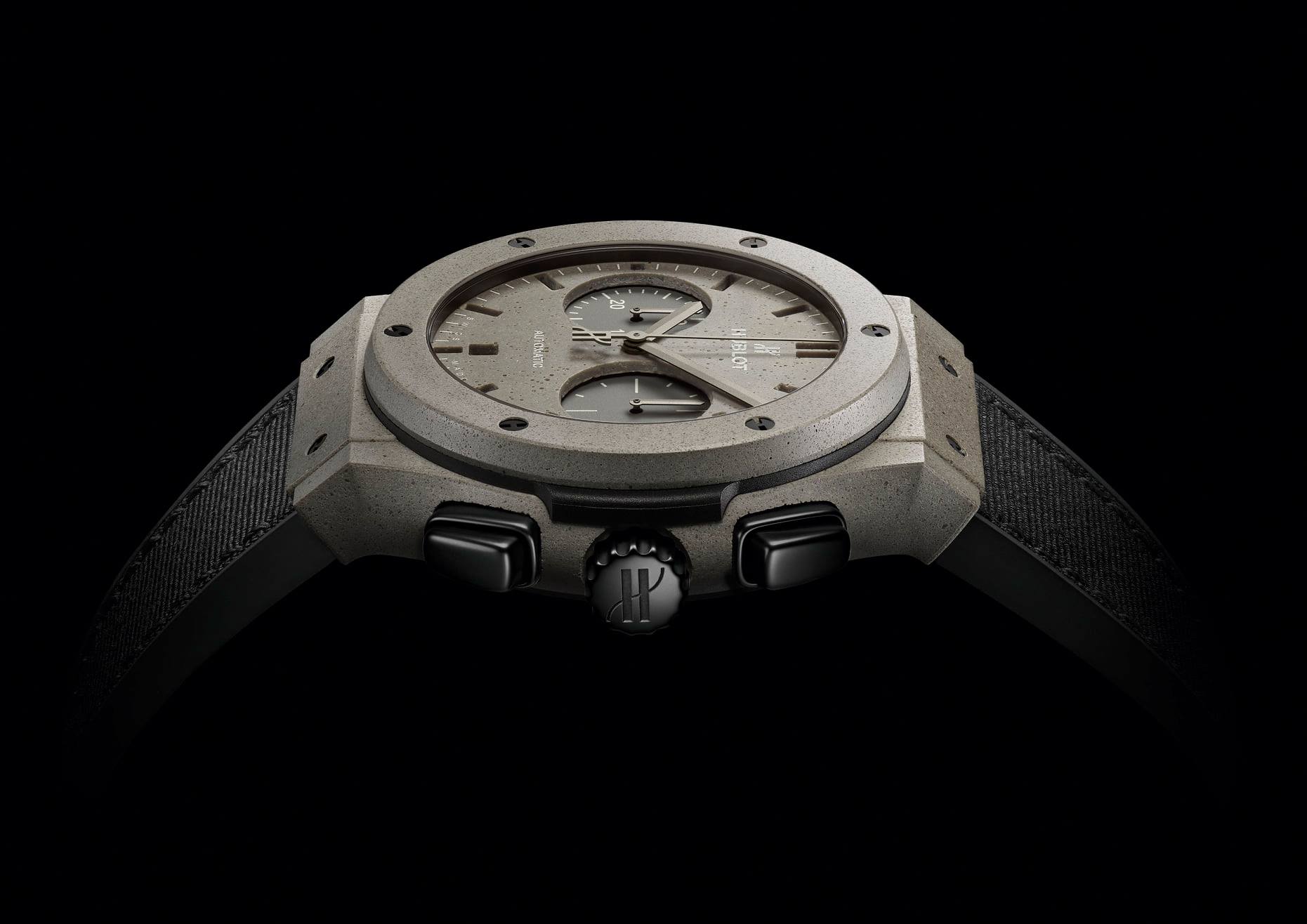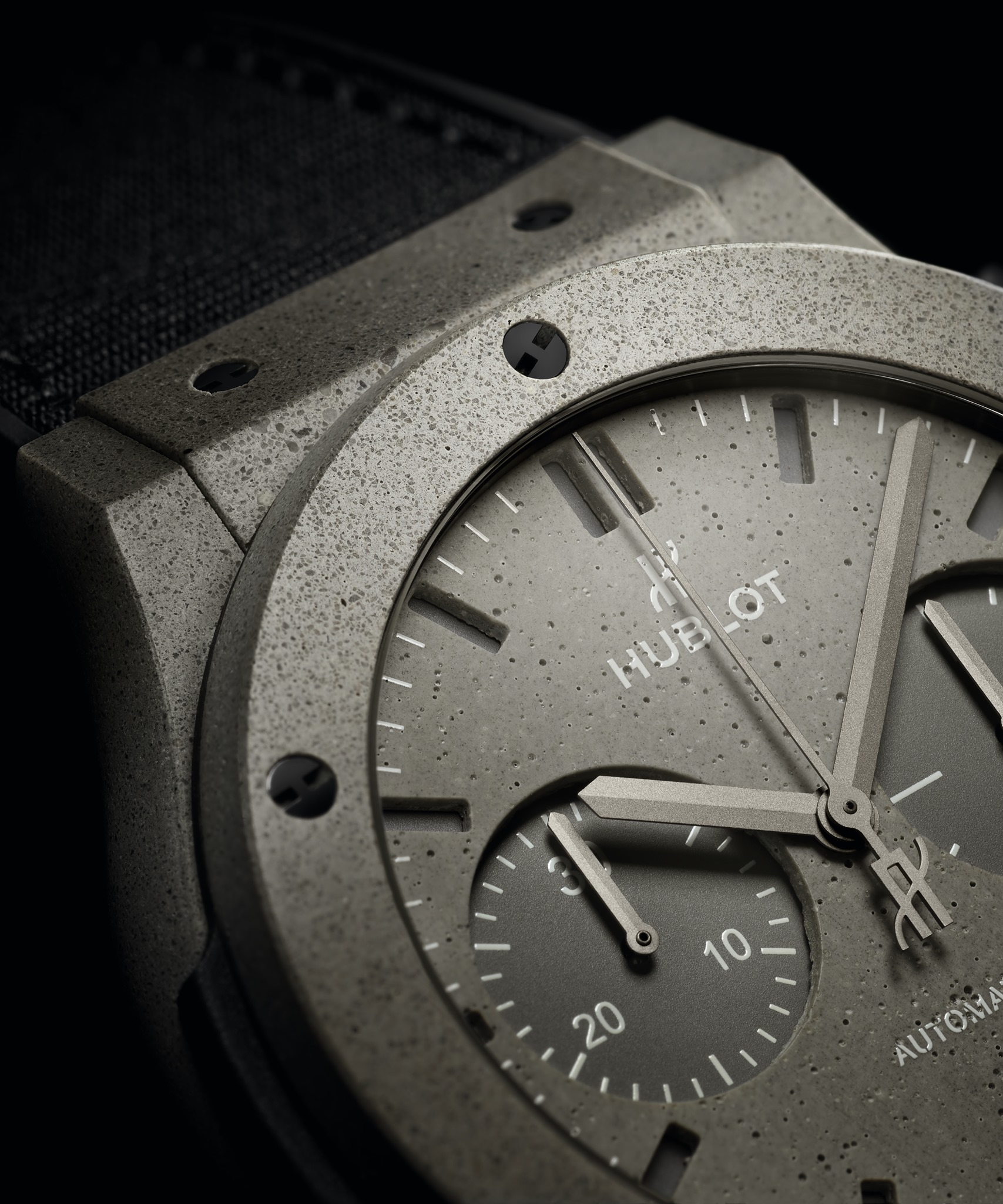 La segunda versión del Concrete Jungle de Hublot se ha reforzado con un material a base de cemento reforzado, y sigue siendo fiel al principio del Arte de la Fusión, la apuesta irrenunciable de la marca por la innovación. Dicho material se compone en un 65-75% de cemento fino, un 25-30% de resina de epoxi en lugar del agua que se utiliza en el cemento estándar y un 5-10% de fibra de vidrio, en sustitución del acero utilizado para reforzar el cemento. El equipo de diseño de Hublot, en Nyon, mejoró la resina de epoxi con un aditivo contra rayos UV para evitar que el color cambie con el tiempo, y aplicó un tratamiento antigraffiti a los componentes terminados para impedir que el cemento se impregne de contaminación o suciedad. La caja y la carátula creados con este cemento reforzado están hechos para resistir el paso del tiempo, subrayando la importancia de una meticulosa labor artesanal en la creación de piezas duraderas.