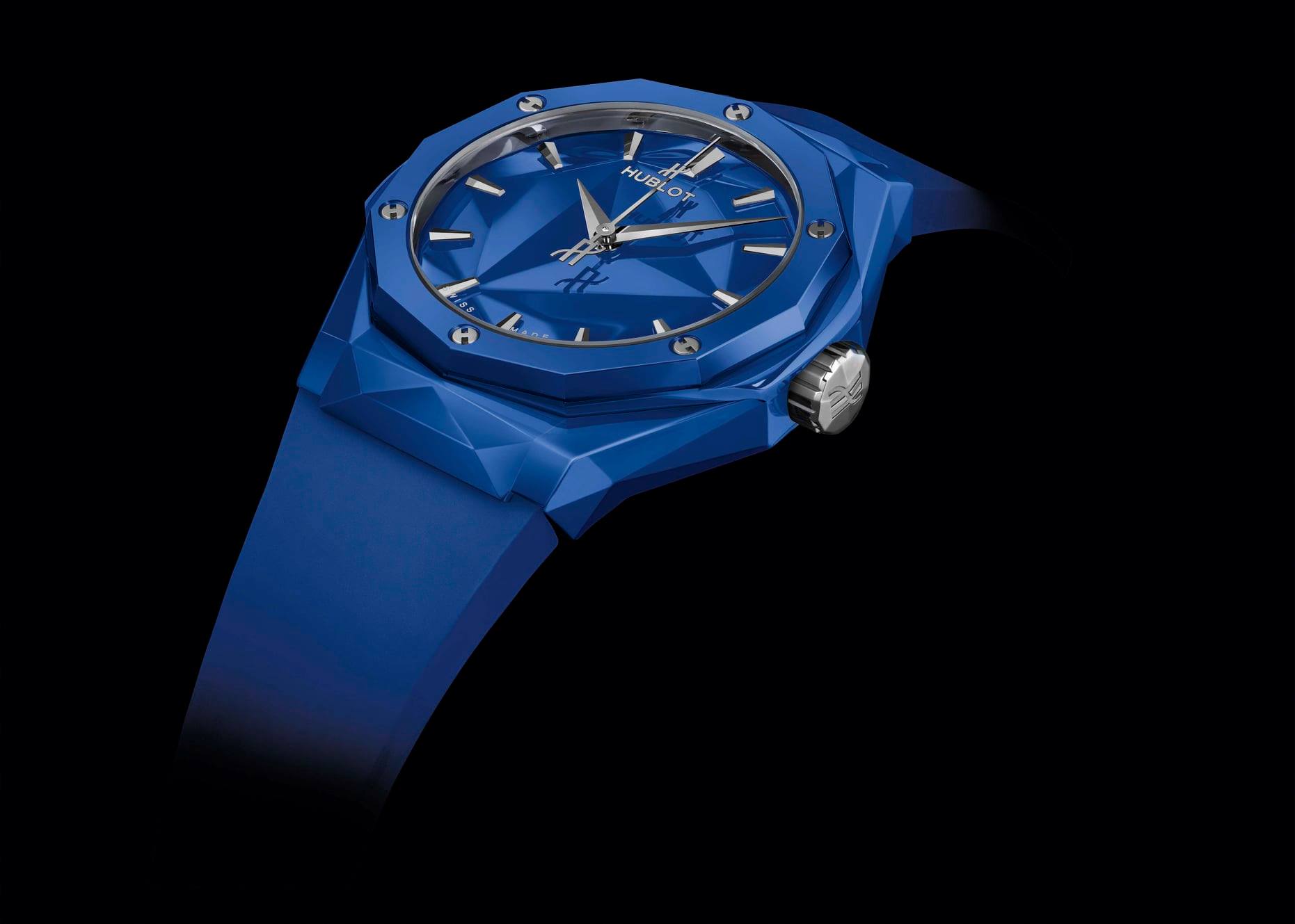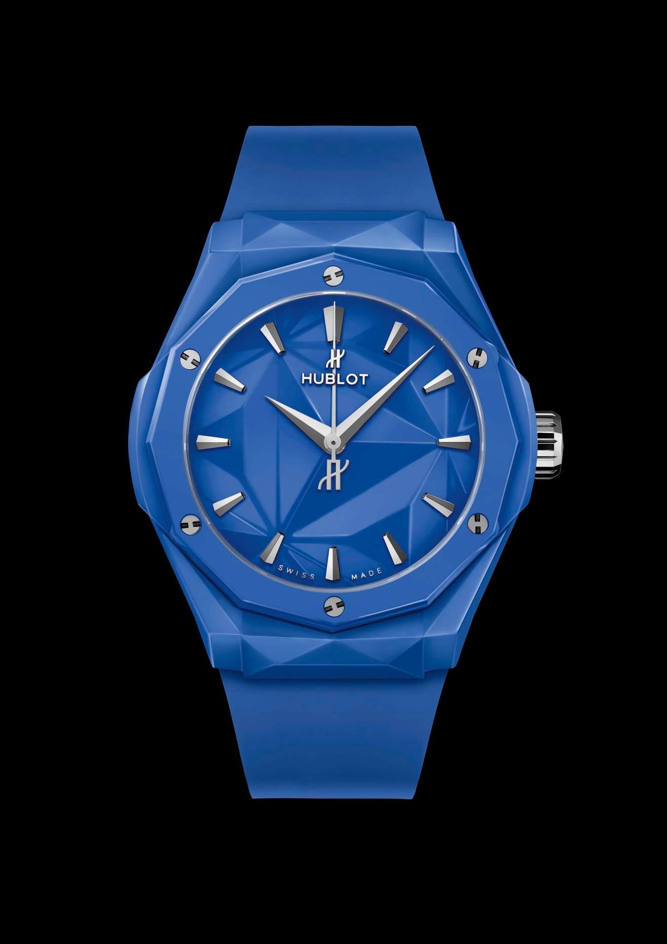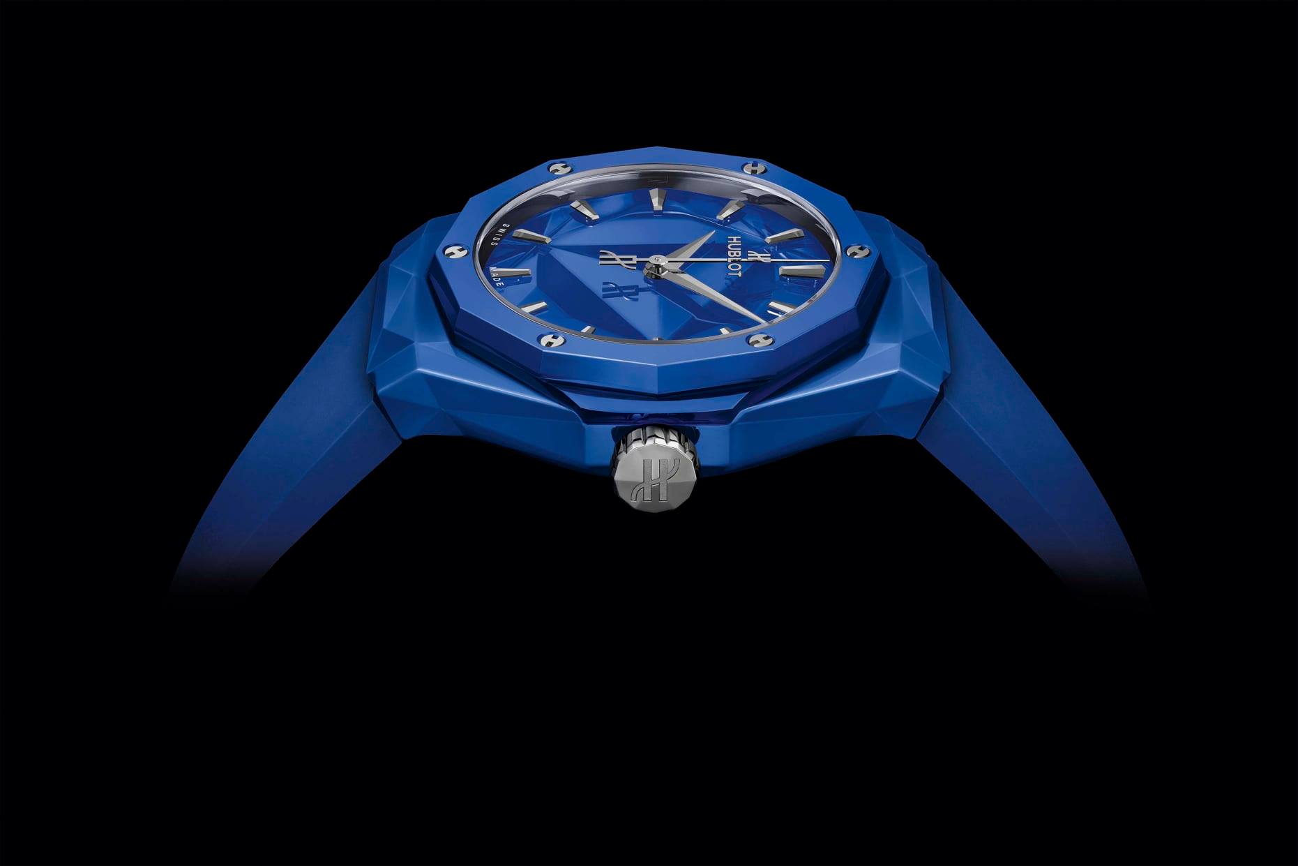 Su carátula replica la esencia de la caja facetada, justo como lucen las esculturas del artista francés. El material elegido para estas dos ediciones es la cerámica. Fabricada en los departamentos de I+D y de Metalurgia de la firma, hoy se ofrece en este par de piezas estilo origami con extensión a 40 mm de diámetro.