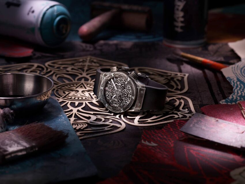 Hublot colabora por segunda ocasión on el artista estadounidense Shepard Fairey, y presenta un Classic Fusion Chronograph. Se trata de una uténtica escultura de titanio para lucir en la muñeca, este reloj simboliza los ciclos naturales de la vida y la unidad entre diferentes culturas.