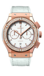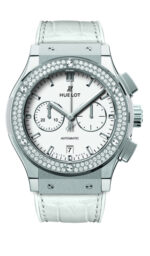 La pieza que hoy presenta Hublot es una clara muestra de elegancia y deja en claro que el blanco, más que una tendencia, ha llegado para quedarse. La nueva incorporación a la colección Classic Fusion, denominada Classic Fusion Chronograph White, luce diamantes blancos, carátula blanca, correa blanca… la interpretación perfecta de la filosofía Hublot: el “arte de la fusión”. El blanco es un color mágico y eterno, de gran feminidad y elegancia que además puede utilizarse tanto en verano como en invierno.