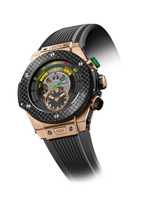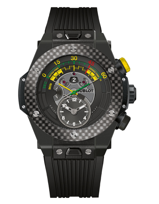 El reloj oficial de la próxima Copa del Mundo de la FIFA es el primer Big Bang Unico Cronógrafo Birretrógrado, una primicia en Hublot, ya que hasta la fecha nunca había presentado una función birretrógrada, y, además, con un cronógrafo central, movimiento que actualmente es objeto de un registro de patente.
