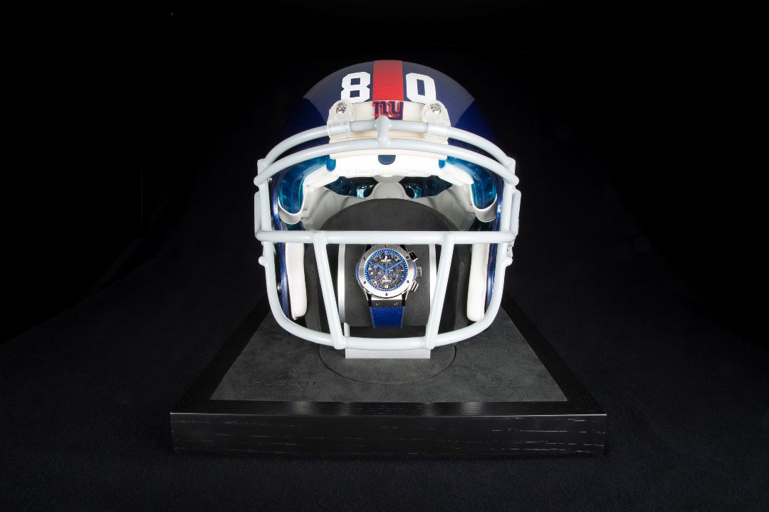 El receptor del equipo de origen puertorriqueño, Victor Cruz, y el Director General de HUBLOT en América, Jean-François Sberro, desvelaron durante la celebración una Edición Limitada de los relojes Classic Fusion Aerofusion, los cuales fueron inspirados en los Giants y co-diseñados con la ayuda del jugador.