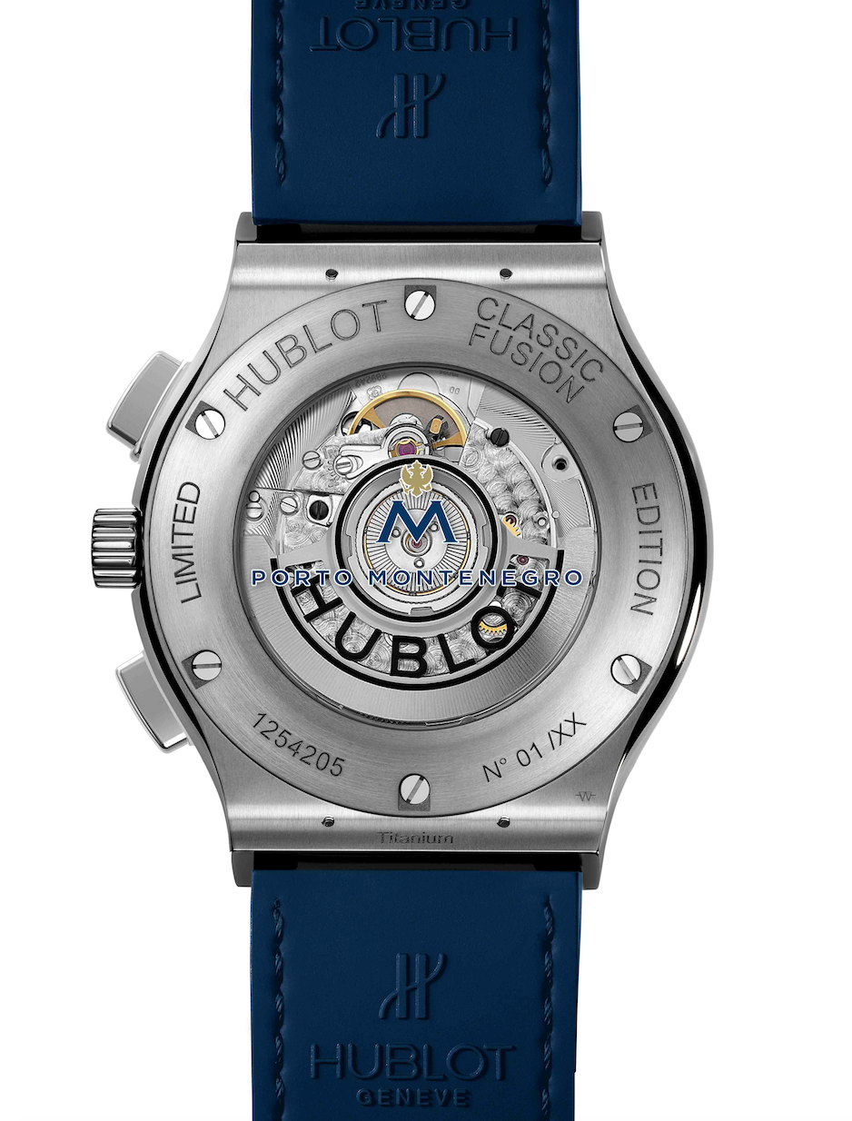 Con el fin de celebrar la nueva hazaña con el Club Náutico de Port Montenegro, Hublot, presentó el nuevo Classic Fusion Chronograph Porto Montenegro. Un reloj de Edición Limitada a 30 piezas que alberga un calibre HUB1143 de remonte automático con una frecuencia de 4 hz y una reserva de marcha de 42 horas.