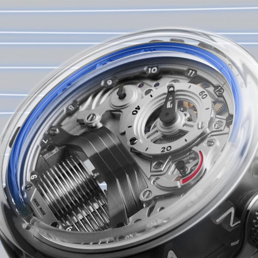 Solicitado y fabricado en colaboración con TEC Group y Eric Coudray, se trata de un motor de cuerda manual a 4 Hz. Ofrece 65 horas de autonomía y brinda la información de las horas fluidas, minutos a las 12 y segundos a las 9 horas. En ambos casos, Blue y Black Fluid, se emplea este mejorado movimiento.