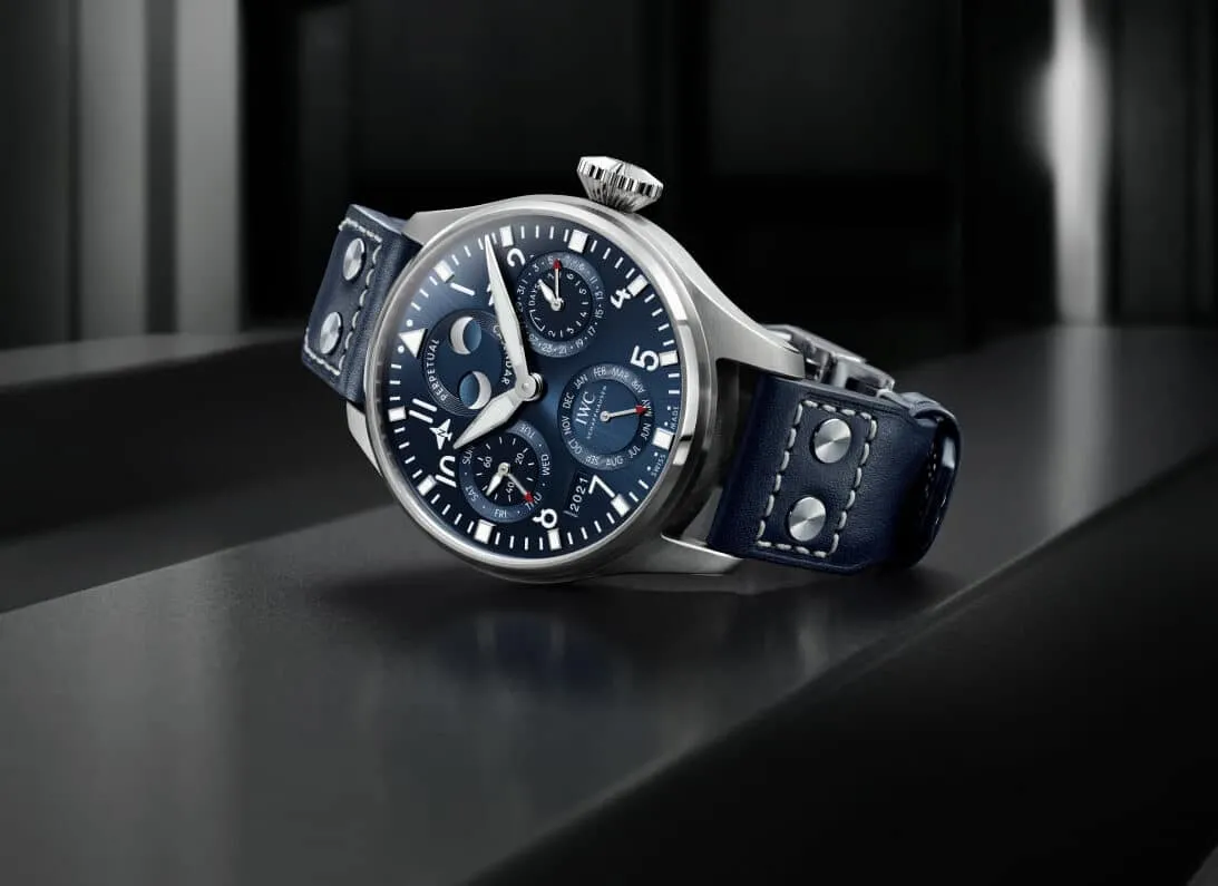Desde que se lanzó el primer calendario perpetuo en un Big Pilot’s Watch en 2006 (Edición Limitada a 25 piezas en platino), se han producido no menos de 37 versiones del diseño icónico de Big Pilot con un calendario perpetuo. En esta ocasión, el Big Pilot´s Watch Perpetual Calendar Ref. IW503605, se entrega en una caja de acero inoxidable con carátula azul y agujas rodiadas. La visualización de la fecha y la reserva de marcha aparecen a las 3 h, el mes a las 6 h, el día de la semana y segundero pequeño a las 9 h, mientras que la indicación de la fase de Luna doble (hemisferio norte y sur) se presenta a las 12 h y es precisa hasta 577.5 años, innovación contemporánea del calendario perpetuo de Klaus.