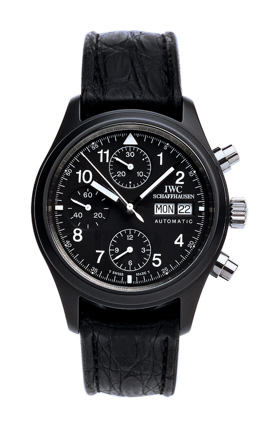 Adiós al titanio o la cerámica negra, bienvenido Ceratanium, el fantástico material visto –por vez primera en Aquatimer–, y relanzado en el Double Chronograph Top Gun de 2019. Esta aleación emplea titanio y cerámica, mejorando las prestaciones de ambas y logrando un look mate excepcional para caja, bisel, pulsadores, corona, fondo y hebilla.