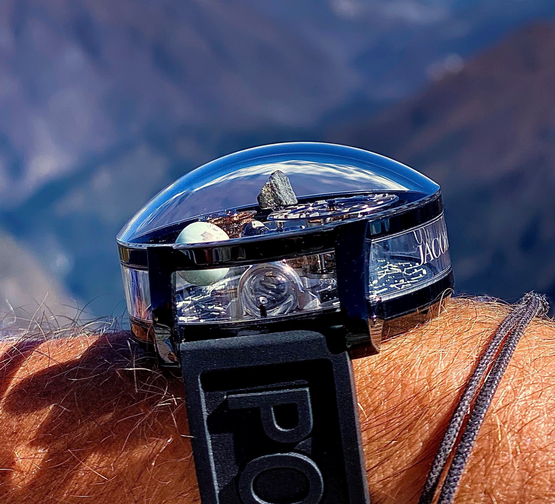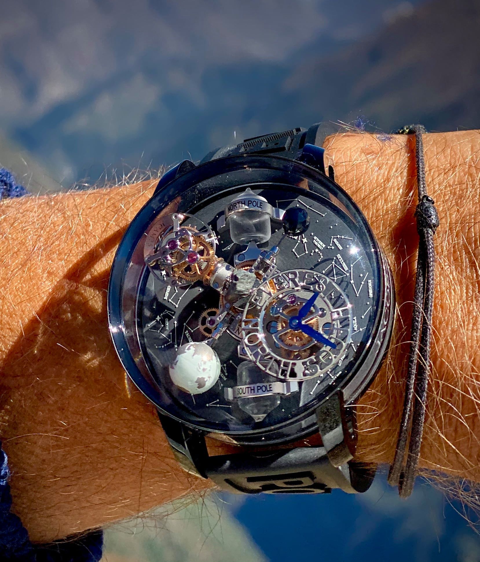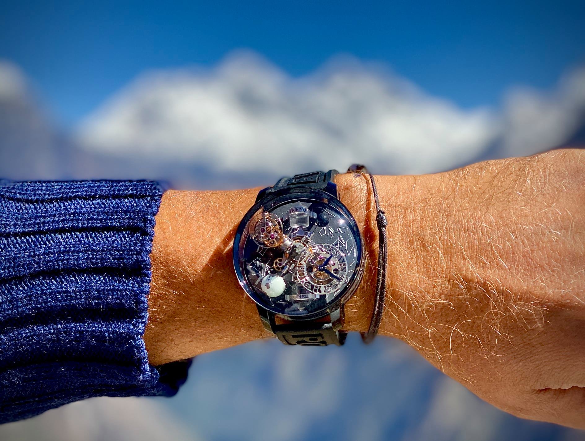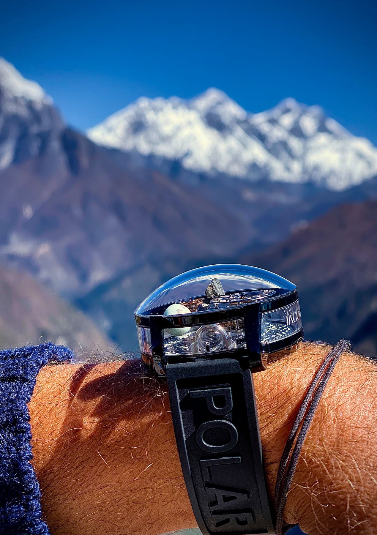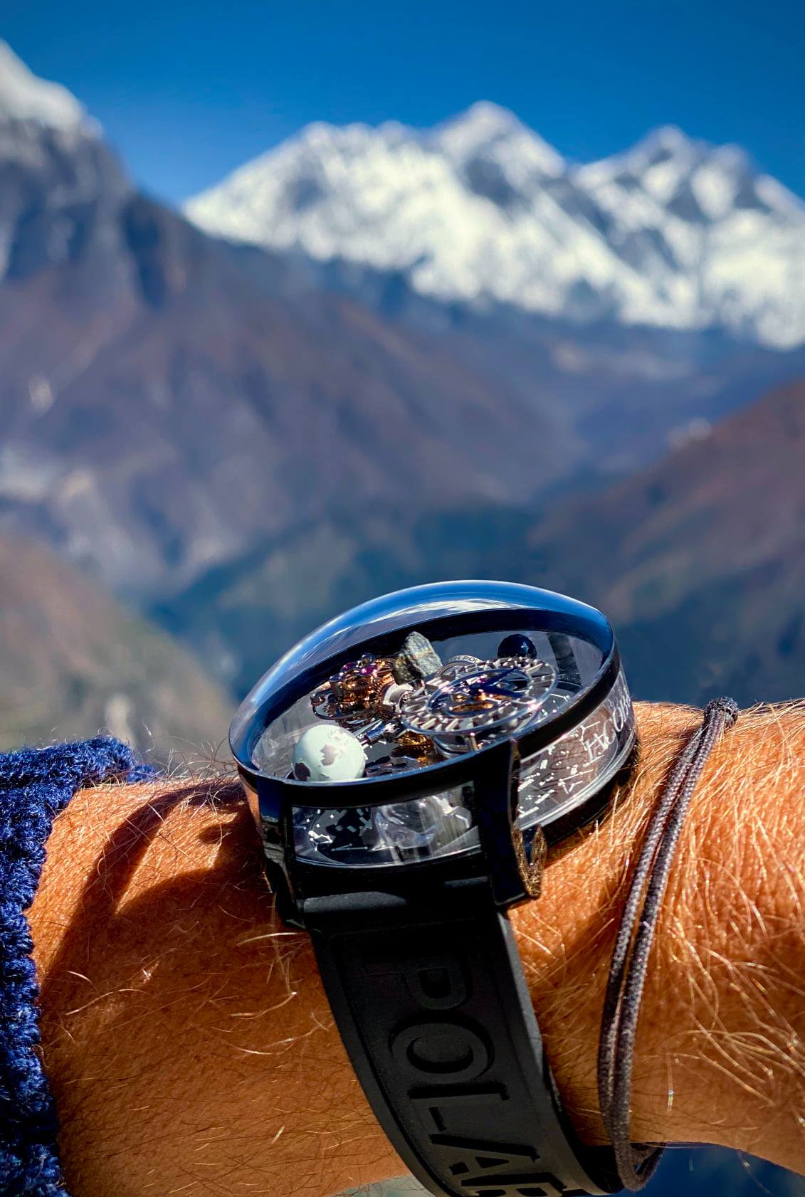 Jacob & Co Astronomia Everest no sólo tiene el nombre, la inspiración estética y la visión de la exploración, sino que ha sido un reloj capaz de soportar el más reciente ascenso de Johan Erst Nilson al Himalaya.