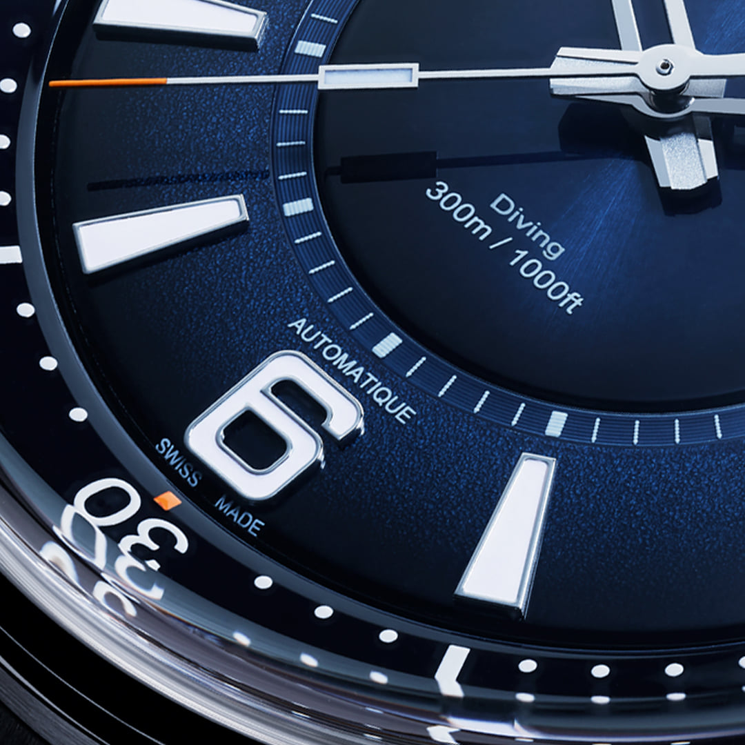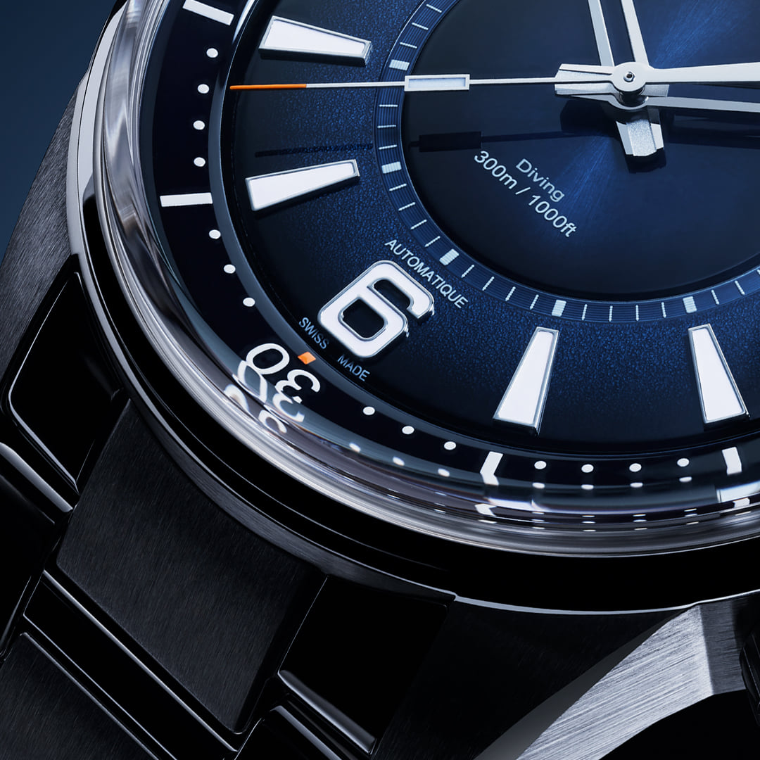 En caja de 42 mm de acero inoxidable, la propuesta de la Grande Maison ha sido entregar un reloj sport de buceo totalmente funcional parra utilizar dentro y fuera del agua.