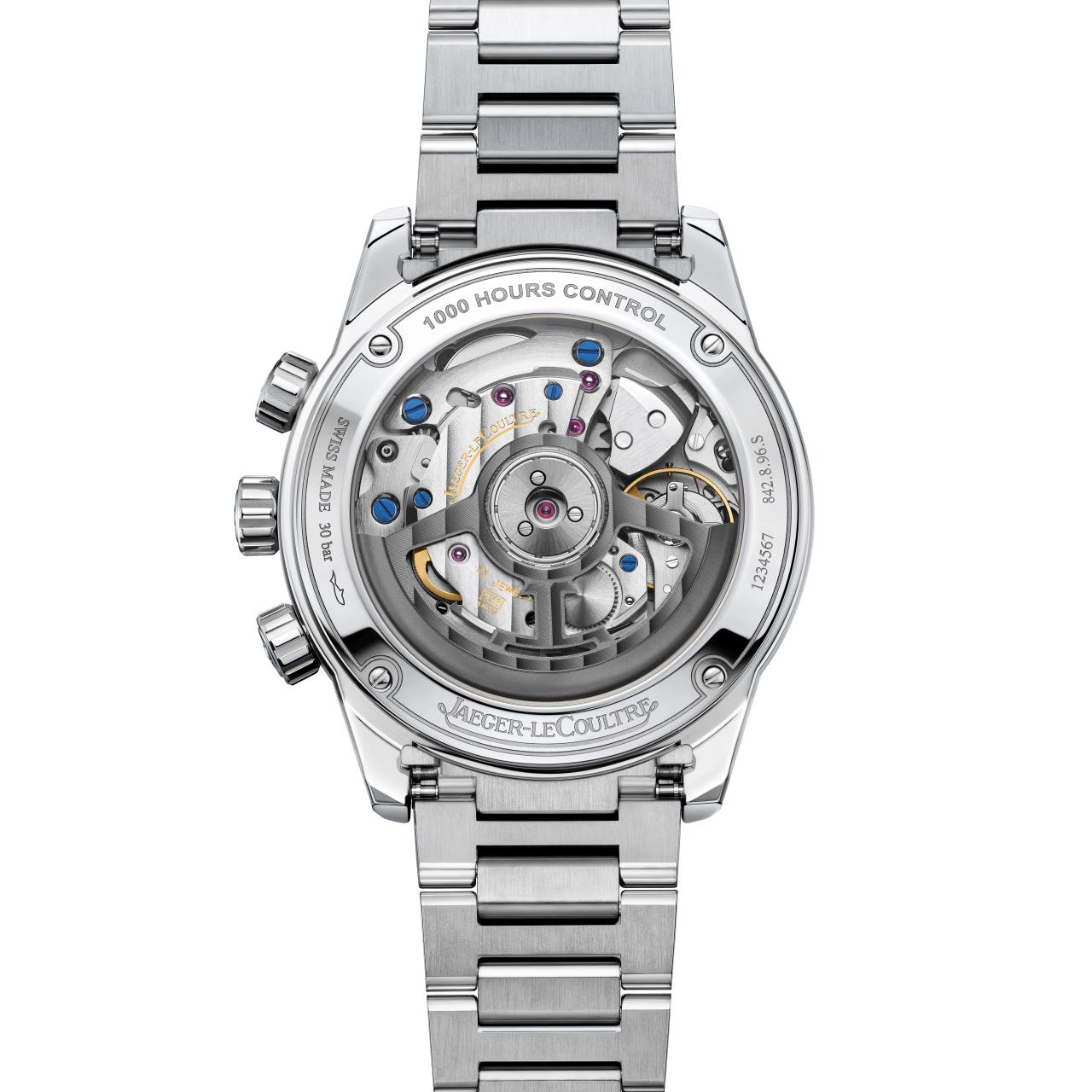 Para hacer posible la indicación del momento en el cual se tiene un compromiso establecido, alarma, se requirió rediseñar el calibre 956 de manufactura con remonte automático. La misión era simple, pero no sencilla. Había que eliminar el fondo sólido en donde previamente golpeaba el martillo para hacer sonar la alarma, y reemplazarlo por un fondo de cristal de zafiro para la admiración estética del movimiento. Se dice fácil, pero no lo es. Los ingenieros en Jaeger-LeCoultre modificaron la posición del martillo para que golpee el lateral de la caja, lo que cambia la arquitectura del calibre.
