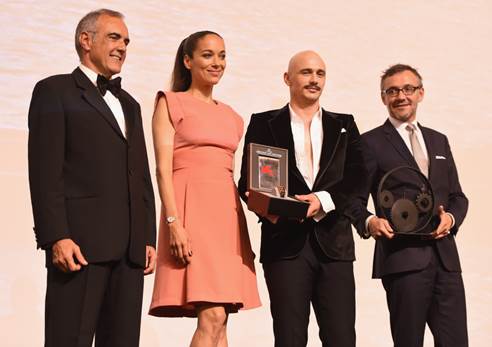 “La Manufactura Jaeger- LeCoultre se siente honrada de rendir homenaje al ingenio creativo de James Franco al entregarle el premio Glory to the Filmmaker. Desde 1833, Jaeger-LeCoultre permanece fiel a la gran tradición relojera apoyándose en un espíritu de inventiva única con el fin de crear piezas relojeras legendarias. Desde hace casi una década, la Grande Maison del Valle de Joux está asociada al Festival Internacional de Cine de Venecia y rinde homenaje al arte y a los artistas. Para Jaeger-LeCoultre es muy importante enriquecer el séptimo arte, una disciplina que comparte los mismos valores que el oficio de relojero en términos de creatividad y de saber hacer artístico y técnico”.