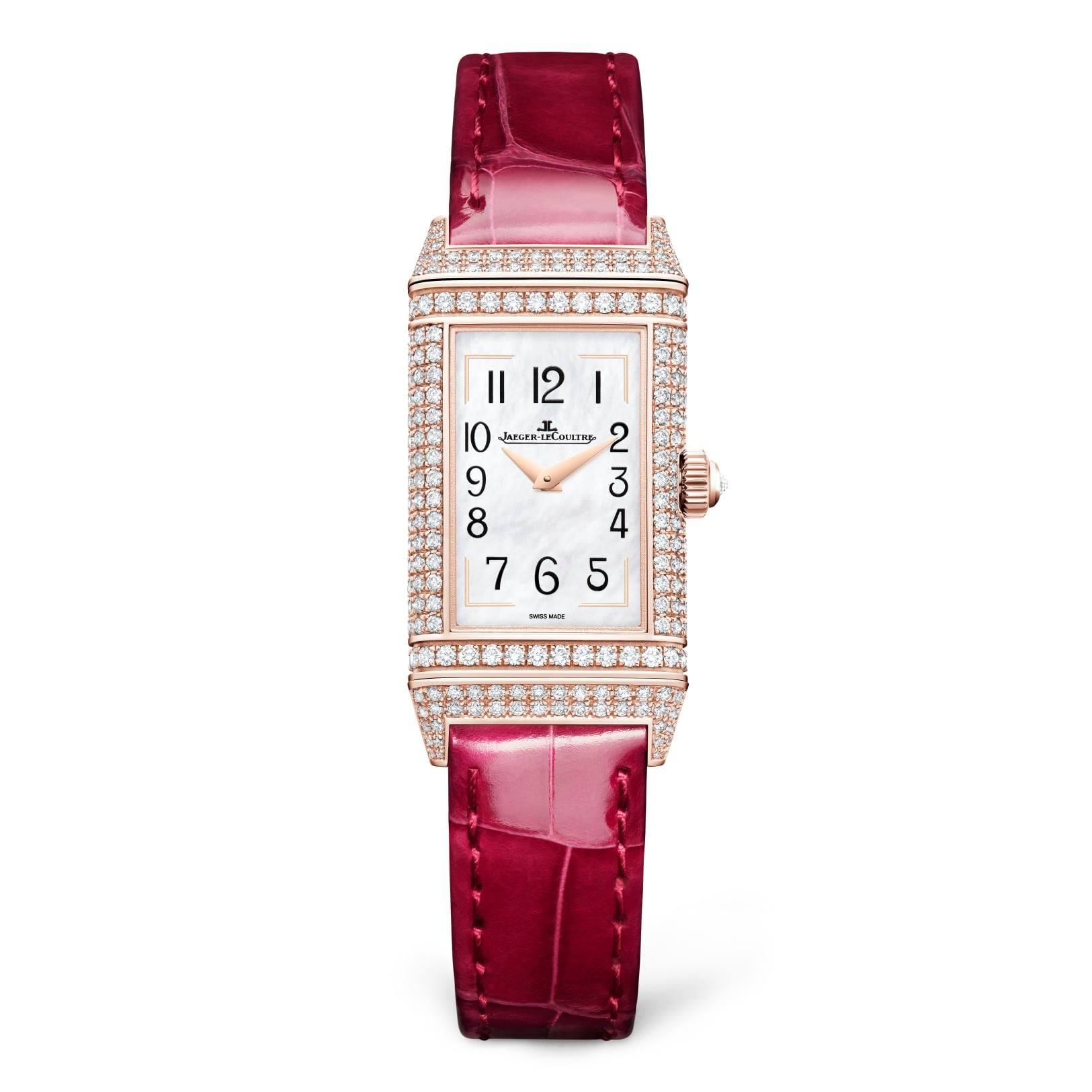 Estos nuevos relojes, enmarcados en la caja alargada del Reverso One y complementados con brillantes correas de piel de aligátor de vivos colores, son una alegre expresión de la elegancia femenina. Naturalmente, dada la maestría de la Maison en el campo de la relojería técnica, no ha habido ninguna concesión en cuanto al movimiento, y el Reverso One Precious Flowers presenta el Jaeger-LeCoultre Calibre 846 de cuerda manual, un movimiento de forma rectangular especialmente desarrollado para el Reverso.