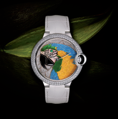Ballon Bleu Cartier motivo loro en marquetería floral